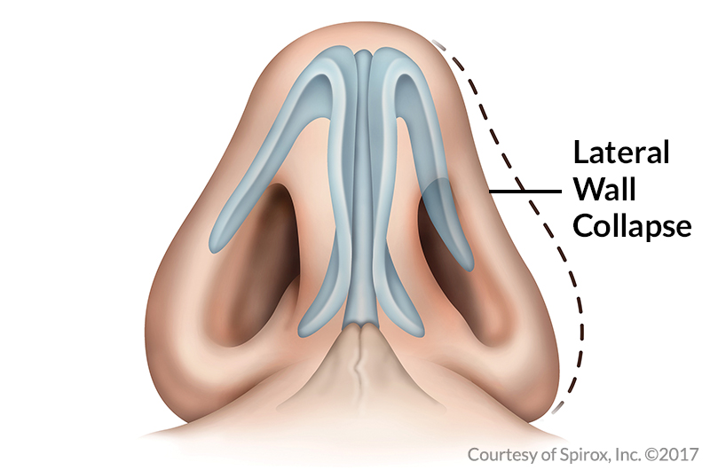 Weakness in the lateral nasal wall can result from abnormal anatomy which can be congenital. In addition to weakness of the lower lateral cartilages of the nose, prior rhinoplasty surgery can also lead to lateral nasal wall instability. Over-resection of the lower lateral cartilages is a common cause of nasal valve collapse. There are several treatment options to repair lateral wall collapse including functional rhinoplasty and revision rhinoplasty to improve nasal breathing.
