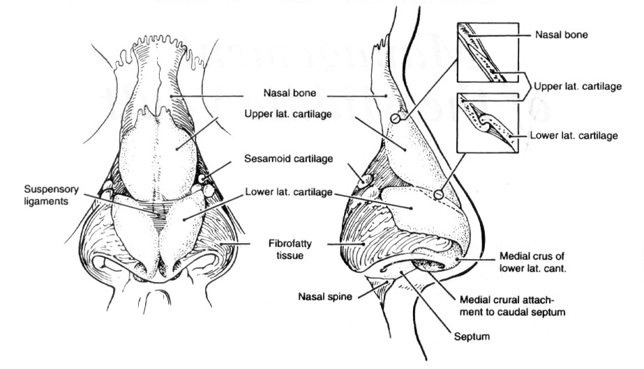 The appearance of the nose is the result of a complex relationship between a soft tissue envelope and a bony and cartilaginous skeleton. Nasal airway support is largely affected by the bone and cartilage framework underneath the skin.
