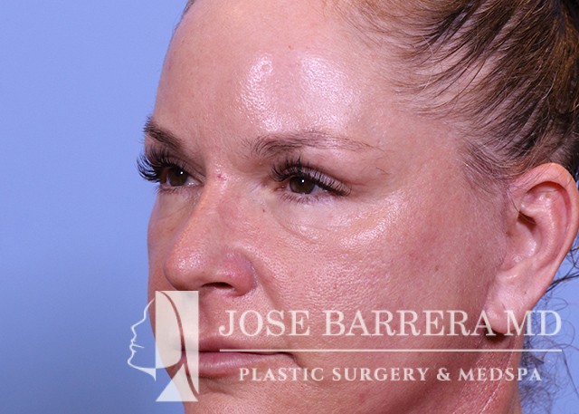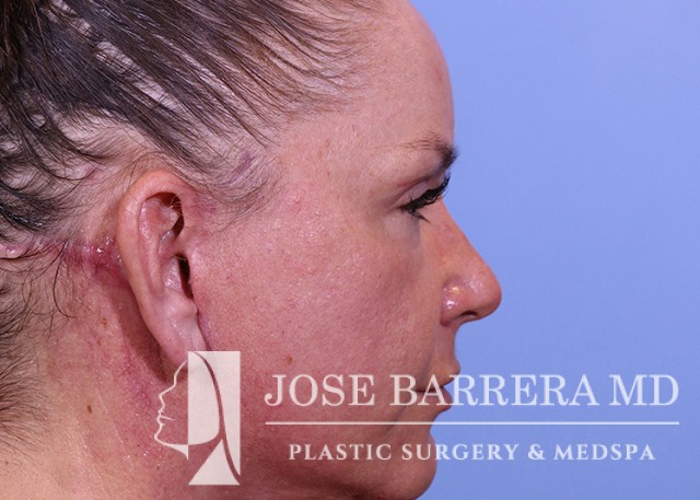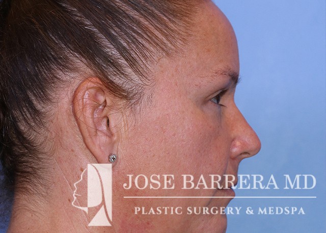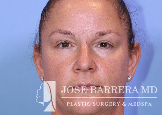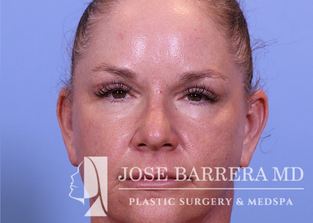 51-year-old female who wanted improvement in her jowls, jawline, and upper eyelids. She also had extensive sun damage and solar elastosis and wanted resurfacing of her face, neck and chest. She is 4 months after the following facial rejuvenation procedures and doing great.
