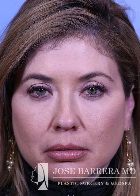51-year-old female with Lateral brow ptosis and Hair thinning. She underwent a Bilateral lateral browlift PRFM (platelet rich plasma fibrin matrix) injections into hairline and temporal scalp. She is two year postoperative with Dr. Barrera.