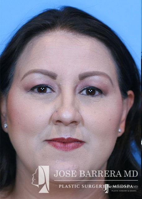 39-year-old female who underwent Dysport injection for forehead wrinkles and glabella lines. She also had a lip augmentation with restylane filler.
