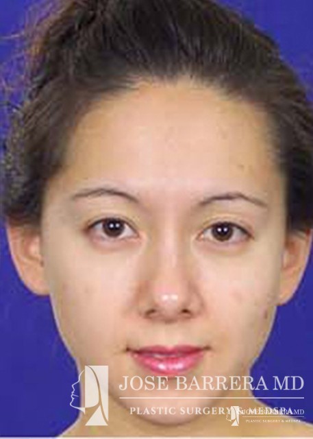 Asian patient with a boxy nasal tip presenting for rhinoplasty to improve the nasal tip shape. A rhinoplasty was performed with cephalic trim and dome sutures.