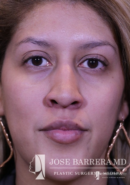32-year-old female who presents with Acquired traumatic saddle nose deformity requiring midvault reconstruction. She is 5 years postoperative after revision rhinoplasty. She has chronic sinusitis and also received balloon sinuplasty (maxillary, frontal, sphenoid), and anterior ethmoidectomy at the same time.
