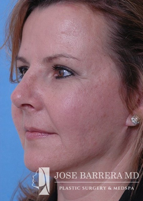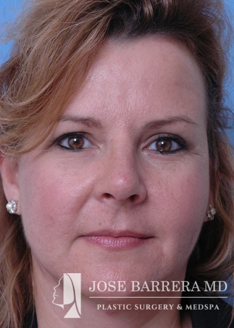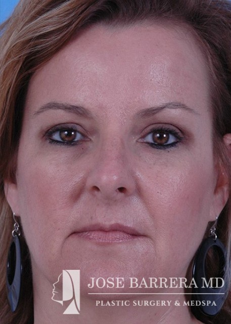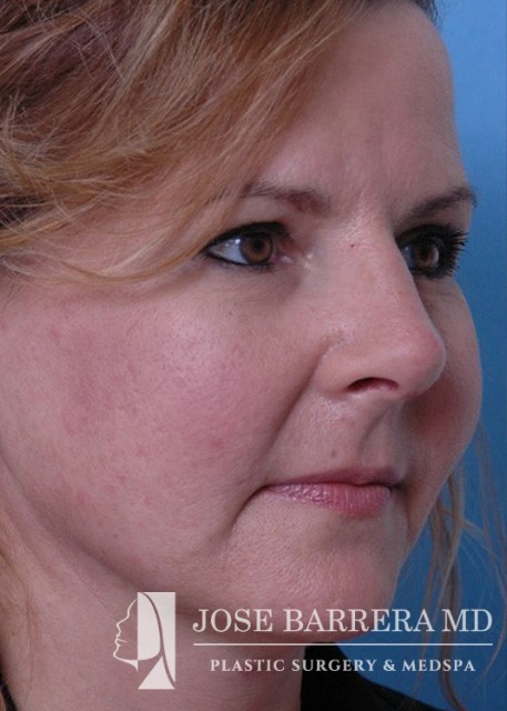 This patient underwent High SMAS facelift and rhinoplasty to improve midface descent, dorsal hump, and nasal tip ptosis