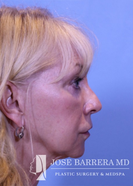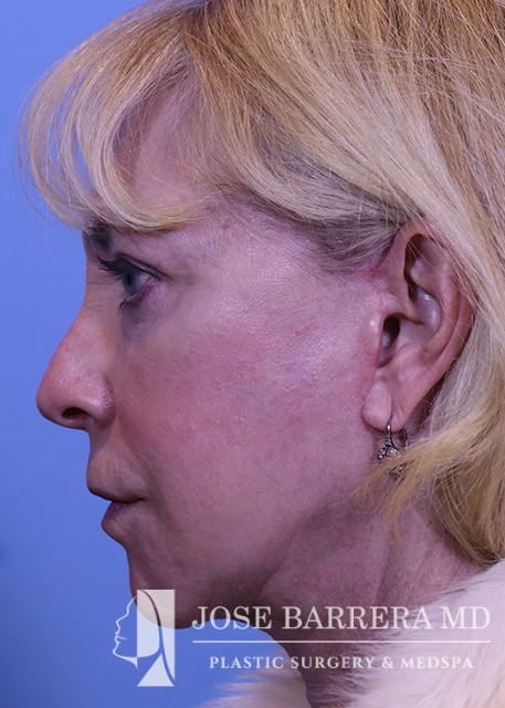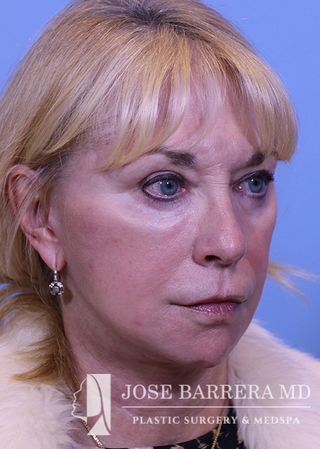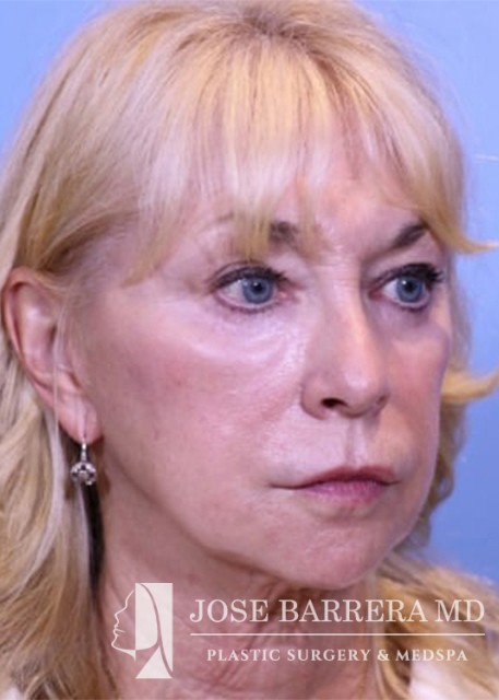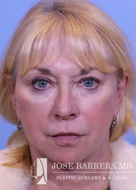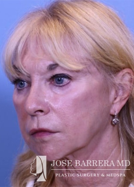 70-year-old female who previously underwent facelift surgery. She had persistent jowls and platysma neck banding. She underwent revision deep plane facelift, deep necklift and upper blepharoplasty with Dr. Barrera. The patient is 6 months postop from her surgery.