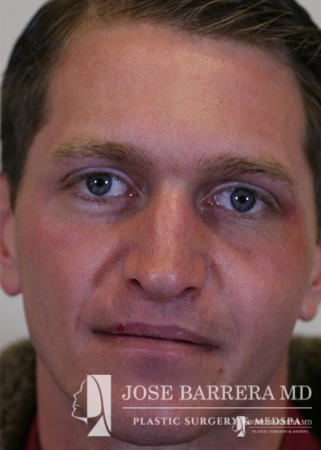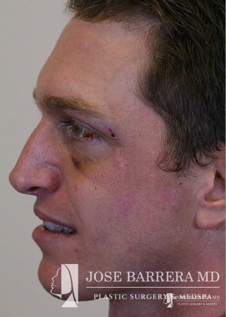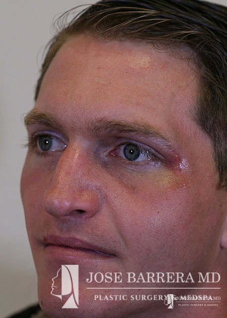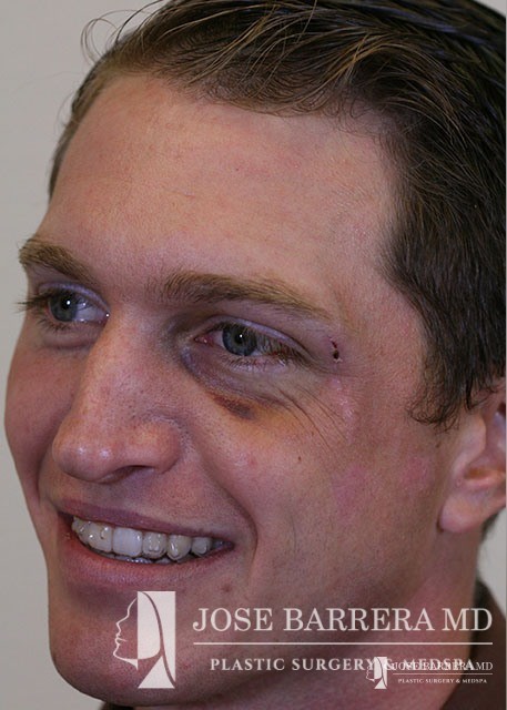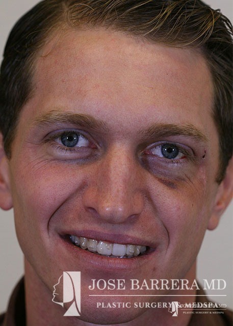 Patient with a traumatic orbital zygomatic malar fracture. He broke his cheek bone and had some asymmetry in his eye position. He underwent open reduction and internal fixation to improve the orbital floor and ZMC fracture.