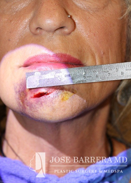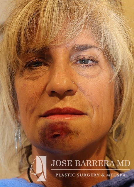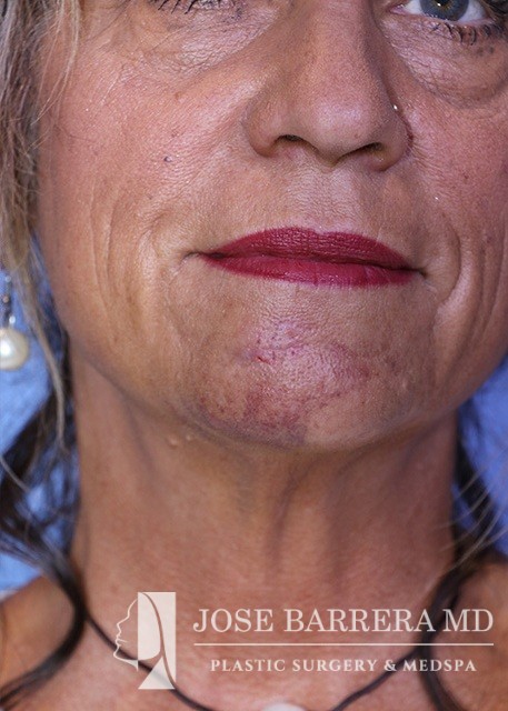 Patient presented with facial laceration of the chin. A complex closure and repair was performed by Dr. Barrera. The patient is seen one month postoperative from laceration repair.