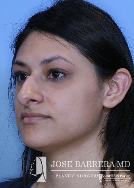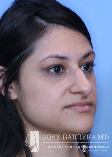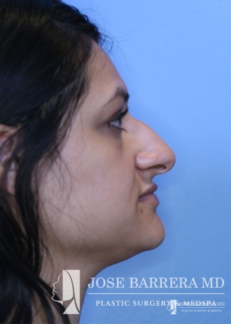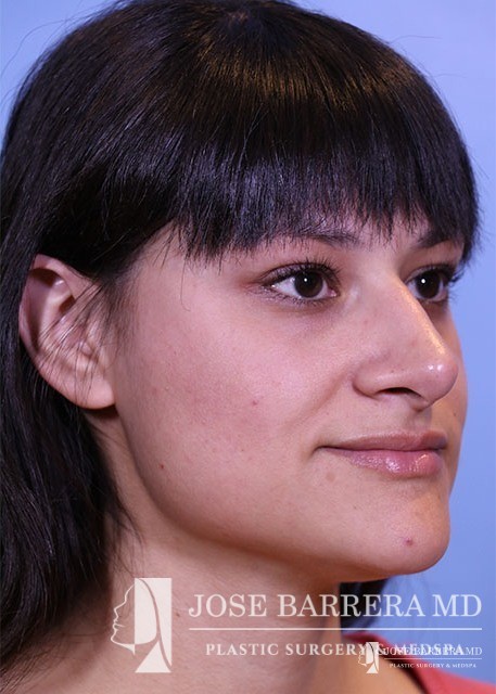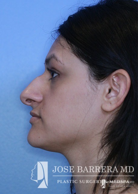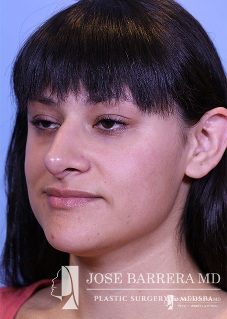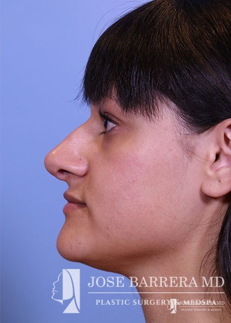 31-year-old female who underwent rhinoplasty for nasal tip reduction and hump reduction. She also desired a smaller nose which we achieved with septal extension graft and nasal tip rotation.