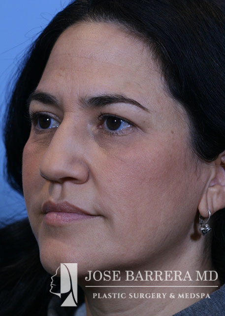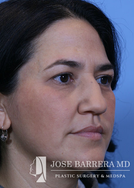 Indications: 45 year-old female presenting today in consultation regarding aesthetic nasal concerns and nasal fracture. She was playing tennis and struck her nose on a pole. She has significant swelling ecchymosis and axis deviation of her nasal bones. She also has previous concerns about her nose and the patient desires dorsal hump reduction, increased tip rotation for a ptotic nasal tip, tip refinement, narrowed nasal dorsum . She is otherwise healthy. She denies previous rhinoplasty. She does have worsening breathing on the left versus the right side.