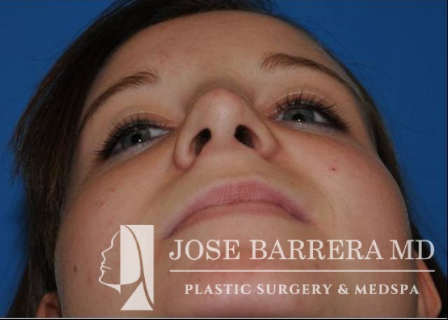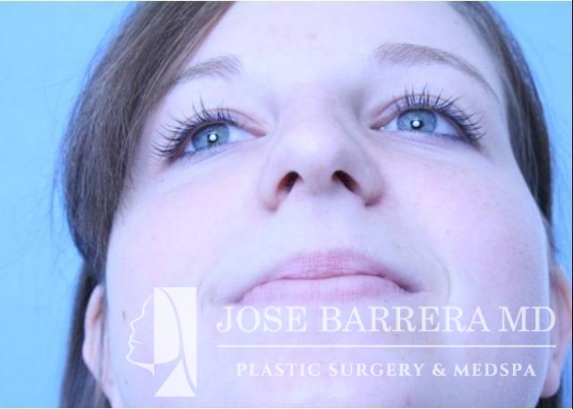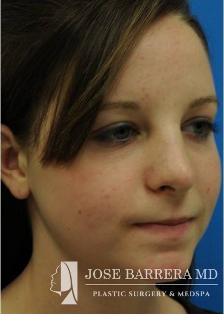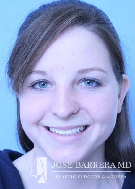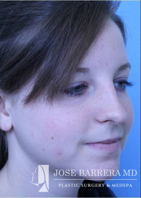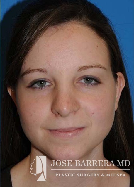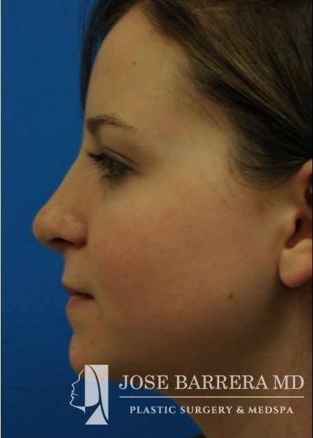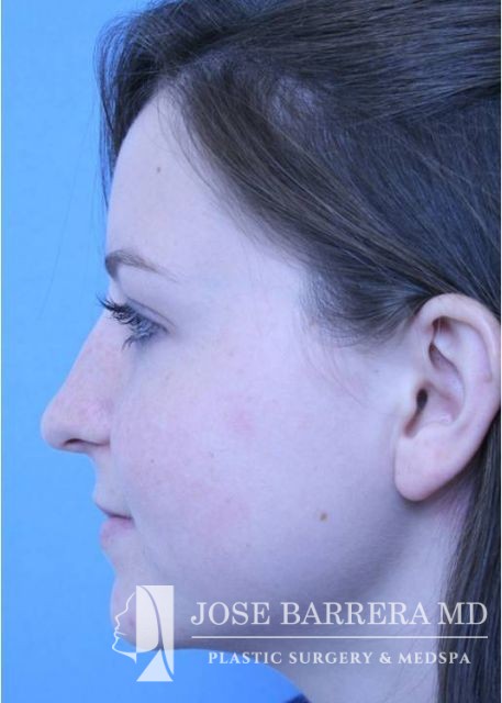 The patient had a cosmetic rhinoplasty surgery to straighten a crooked nose, and improve her nasal hump. Nasal tip refinement was also performed.