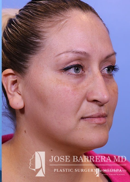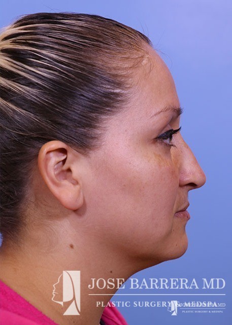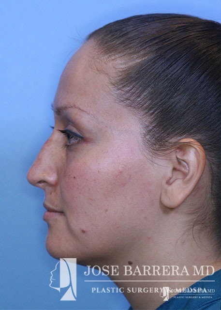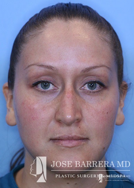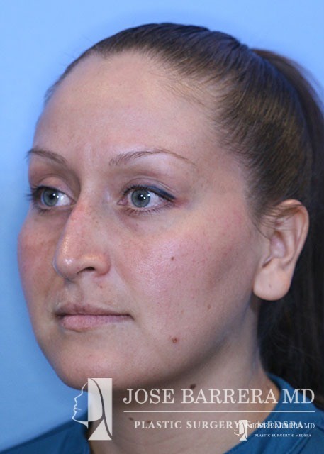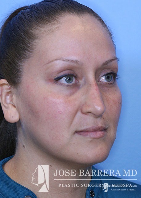 Patient underwent functional rhinoplasty to improve internal valve collapse. Bilateral spreader grafts were placed to improve the narrowing of the middle vault of the nose.