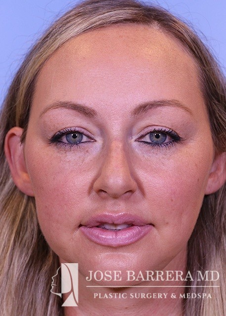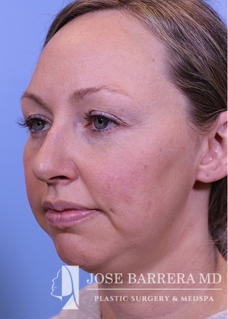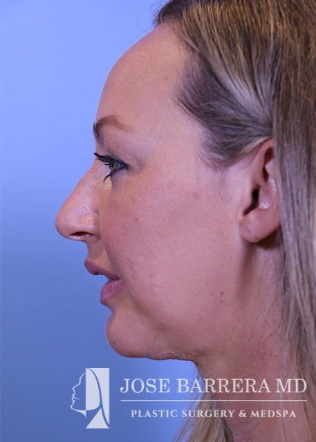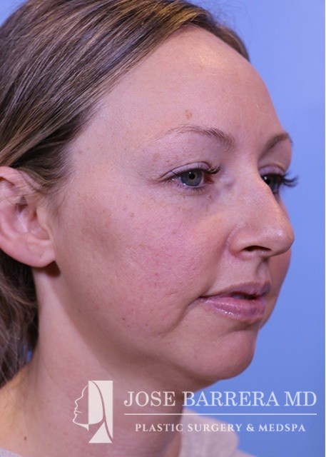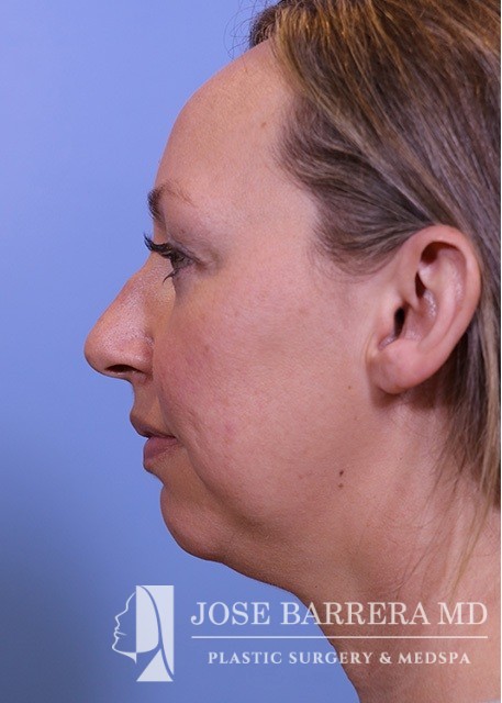 33-year-old female with submental fullness, double chin, and small jaw (microgenia). She underwent a necklift and sliding genioplasty to advance and lengthen her chin.