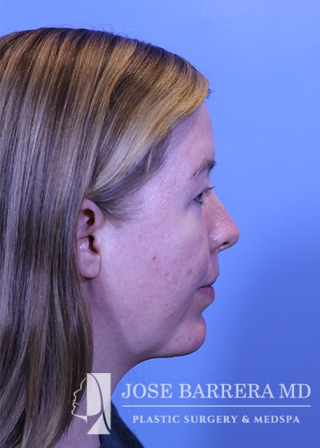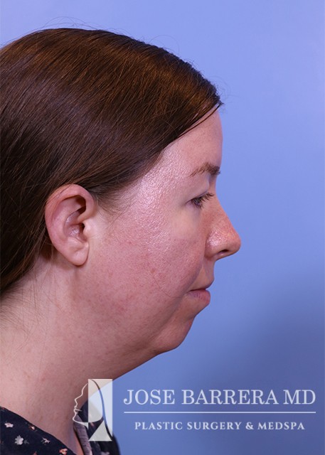 21-year-old female with microgenia, a small chin, that was also retrognathic. She also presented with neck fullness from double chin fat that was deep neck fat. She underwent a GenioLift, Dr. Barrera’s signature Deep Neck Lift and Genioplasty (subperiosteal neck lift) to improve the jawline, remove deep fat, and improve her jawline. She is 3 months after the GenioLift Surgery.