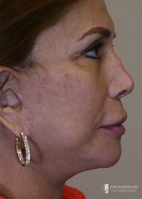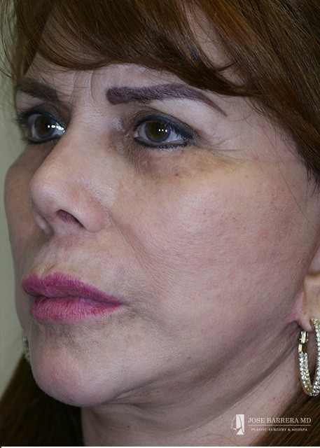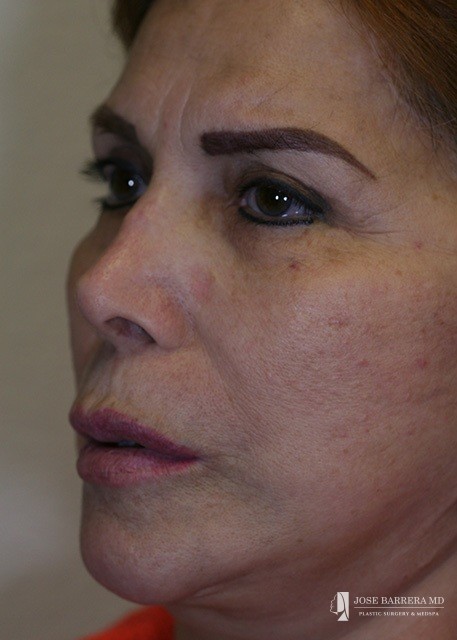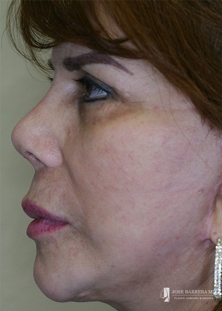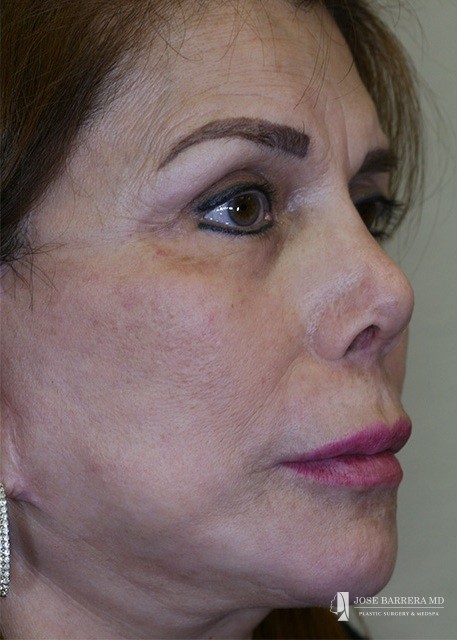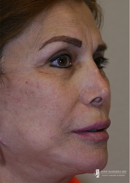 Patient underwent CO2 laser resurfacing to improve skin pigment abnormalities and fine wrinkles around her mouth and eyes. She also had a revision rhinoplasty to improve a step-off deformity from nasal trauma and inverted V deformity from her previous nose job surgery.