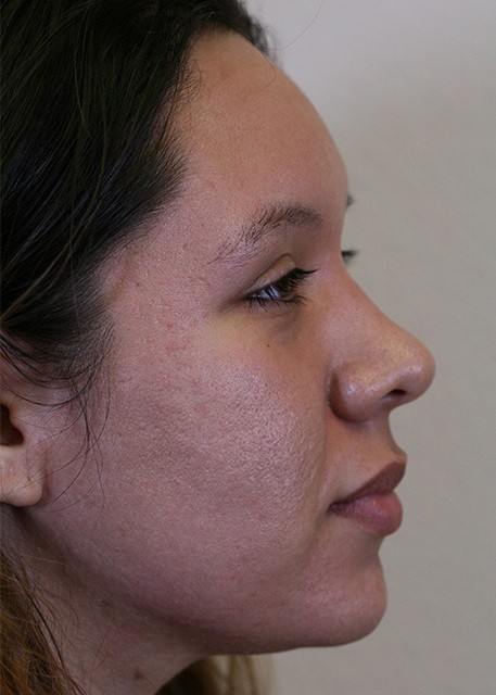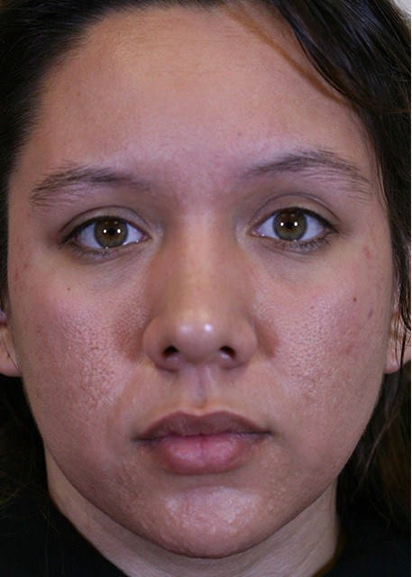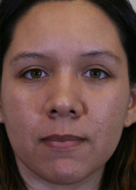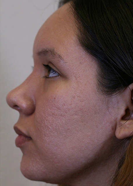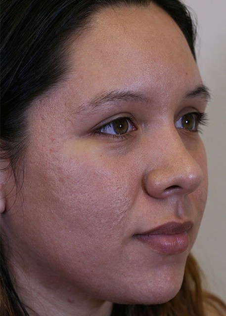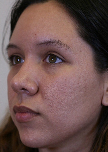 25-year-old presented with severe acne scarring. The patient underwent photofractional laser resurfacing which included a nonablative Erbium laser to improve texture and intense pulse light (IPL) to improve skin color.