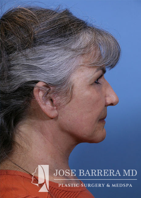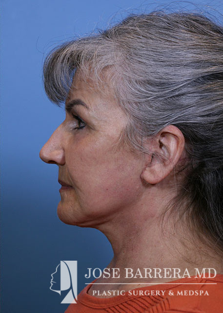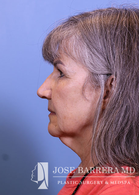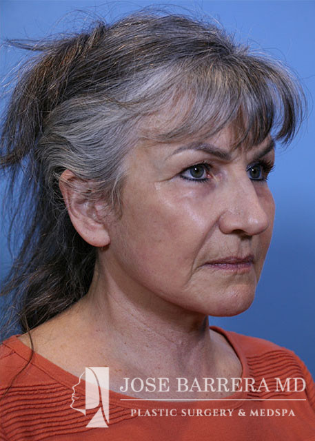 58-year-old female presenting today in consultation for cosmetic aging face concerns. Patient expresses concerns regarding forehead rhytids, marionette lines, facial rhytids, brow ptosis, upper lid dermatochalasis, prominent tear troughs, jowling, neck laxity. She had a Deep plane face, neck rhytidectomy, and Full face CO2 laser resurfacing. She is 2 months postop and healing well.
