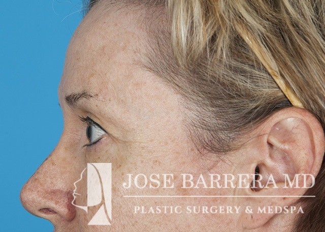 This patient underwent SMAS facelift and CO2 laser skin resurfacing with the Lumenis Active and Deep FX laser. She presented with significant platysma banding, hyperpigmentation, jowling, and solar elastosis which is improved after surgery.