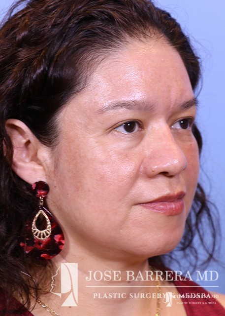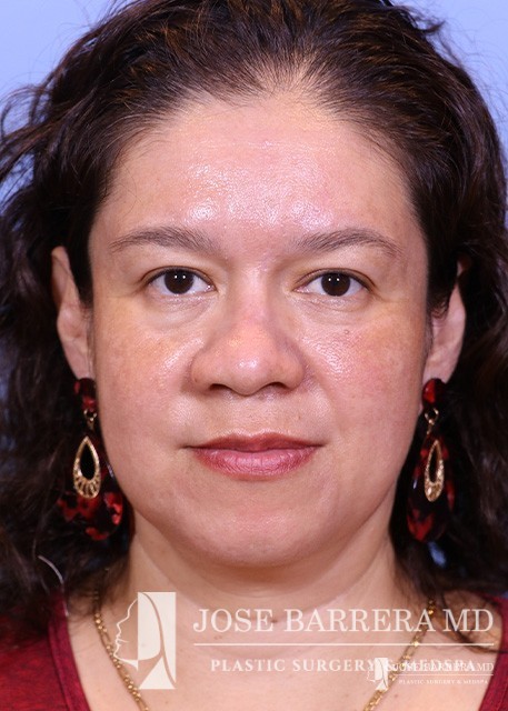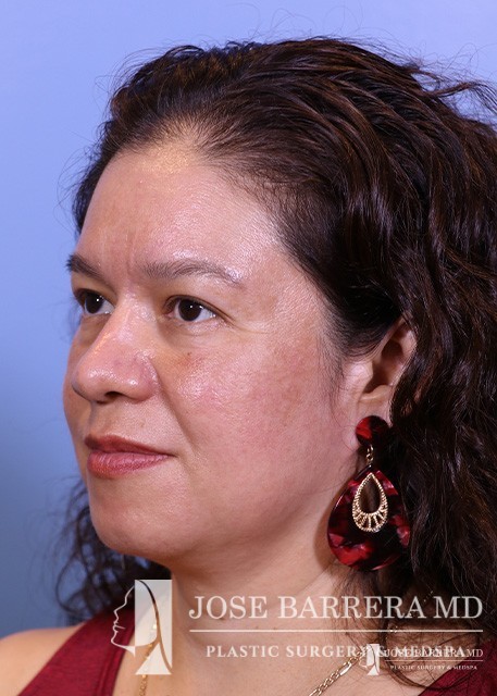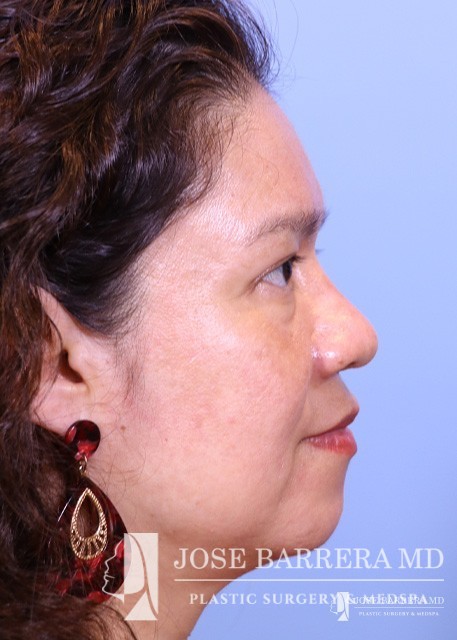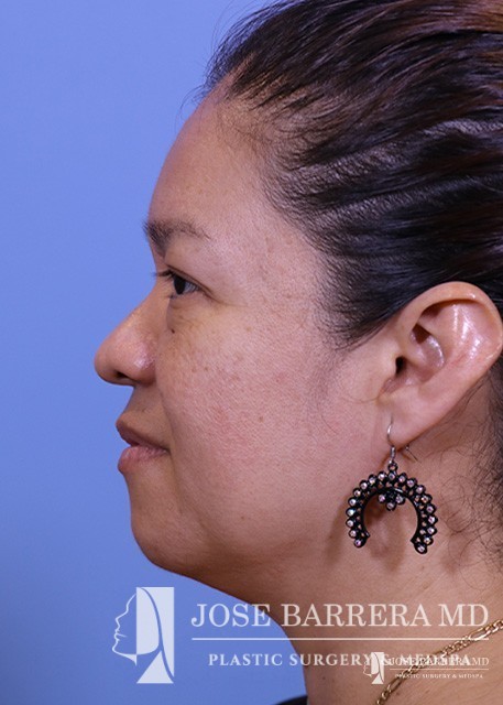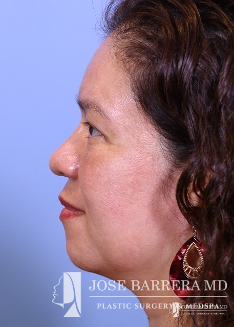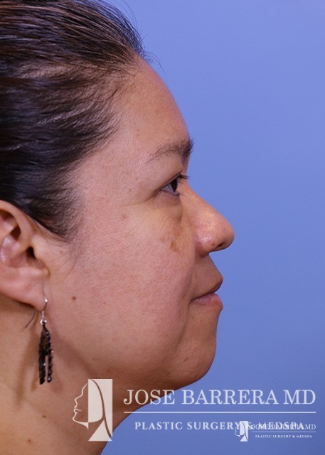 This patient underwent reconstructive rhinoplasty with bone grafting. She is also 3 months post-op from laser skin resurfacing.