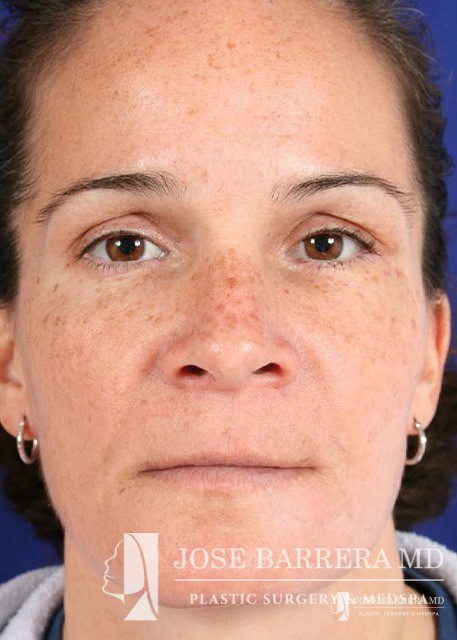 This 37 year old police officer was on-duty was she was struck at a high rate of speed on her driver-side. She underwent a three-stage reconstruction. First stage was Lefort I open reduction internal fixation, ORIF mandible, and orbital fracture repair. Stage 2 was a left eyelid and canthal tendon repair. Stage 3 was Erbium: Yag Laser resurfacing and cheek scar revision.