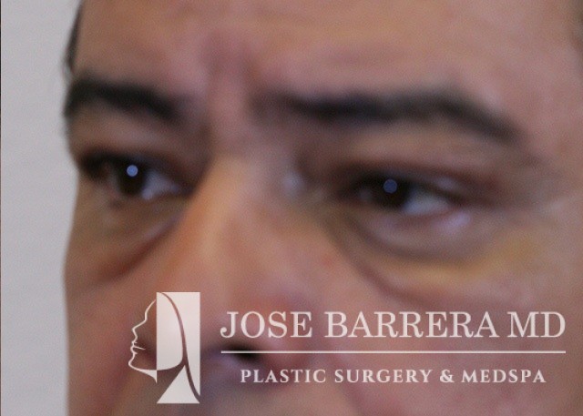 Post op pictures were taken 1 month after the surgery. The patient has done Upper and Lower blepharoplasty surgeries.