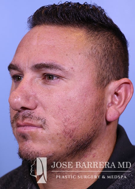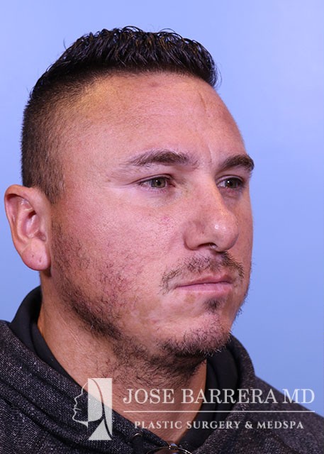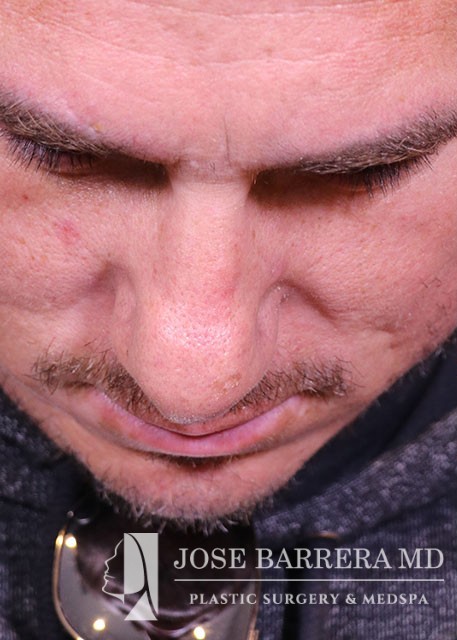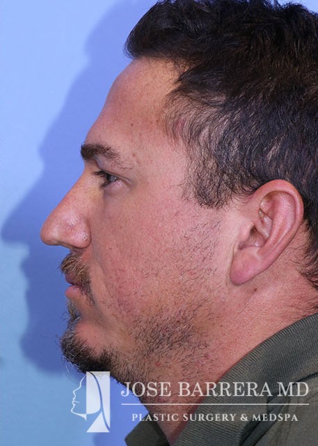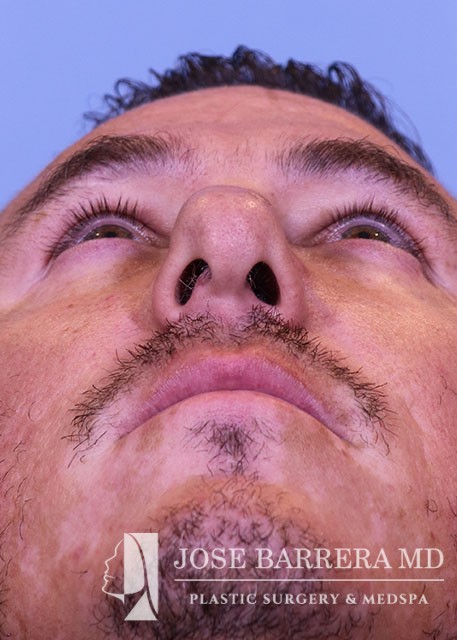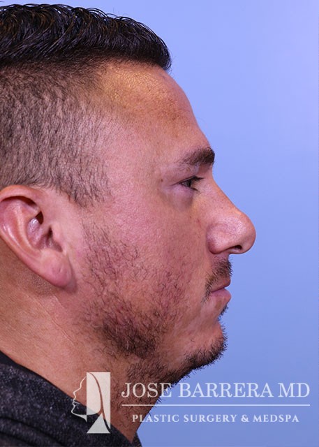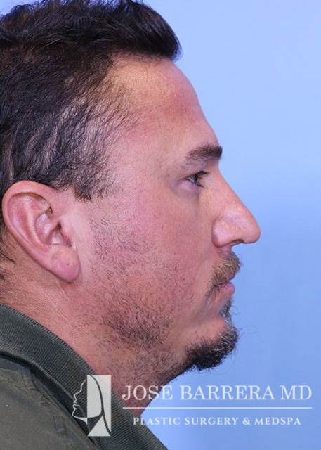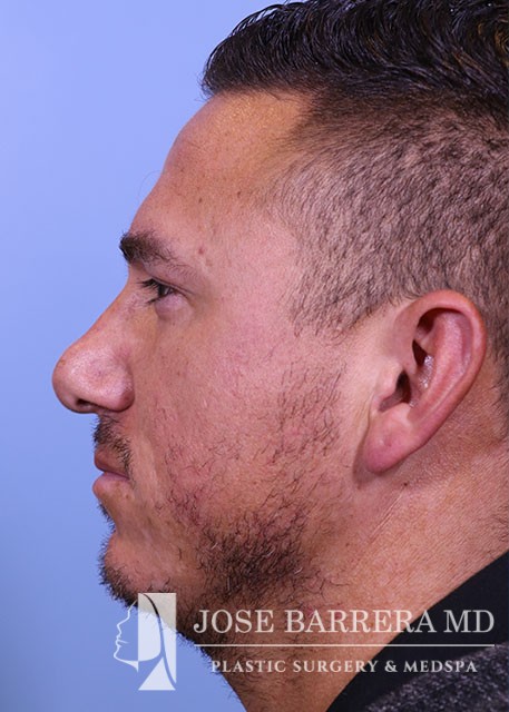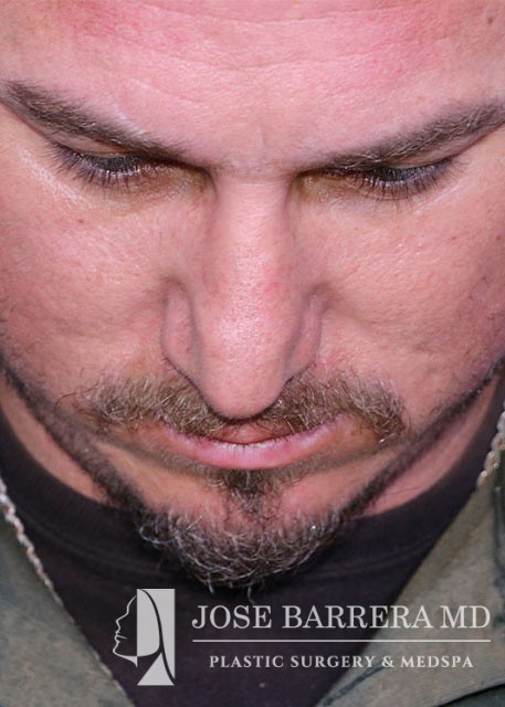 Patient presents with overprojection of the lower cartilages, convexity of the nasal tip and a wide nasal tip. Dr. Barrera performed septorhinoplasty with reconstruction of the nasal tip using costal and septal cartilages. Lateral crural strut grafts and a septal extension was used for structural rhinoplasty. Nasal tip refinement and hump takedown was performed.