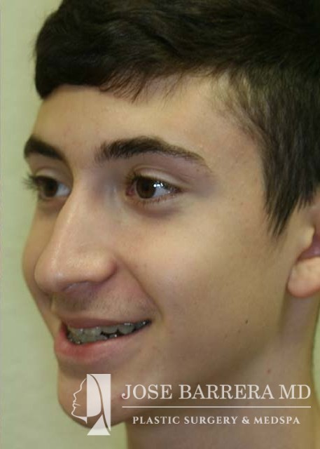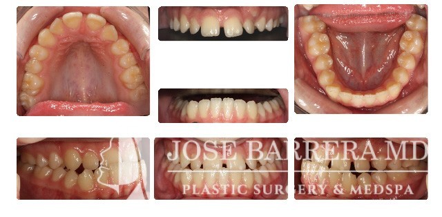 17 yo male with overbite and underjet. The patient underwent a bilateral sagittal split osteotomy (BSSO) with Dr. Barrera. He is 6 months postop.