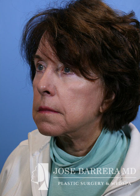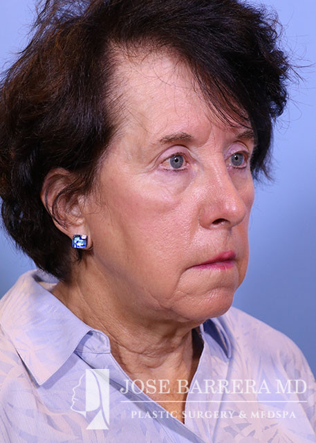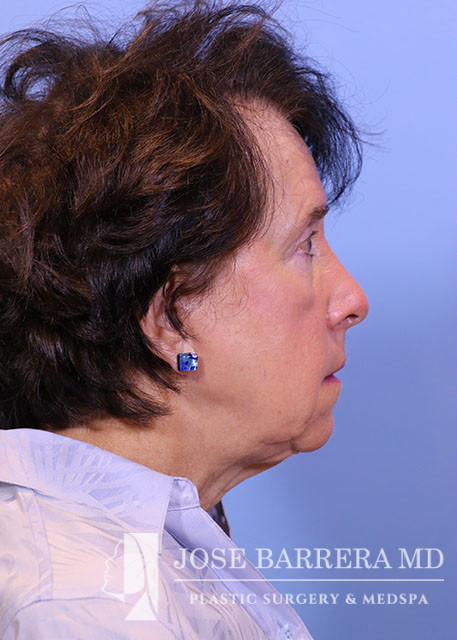 72-year-old female presenting today in consultation for cosmetic aging face concerns. Patient expresses concerns regarding facial rhytids, jowling, neck laxity . Patient does have a history of prior facelift 12 years ago. She underwent a Revision deep plane face and neck lift with CO2 laser resurfacing followed by Autologous Fat Harvest and Facial Fat Grafting 9 months later. She is 1 year postop.