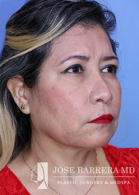 53-year-old female who presents with jowling and neck bands. She is 6 months status post deep plane facelift and necklift with Buccal Fat Removal. Patient is healing well, happy with early cosmetic result.