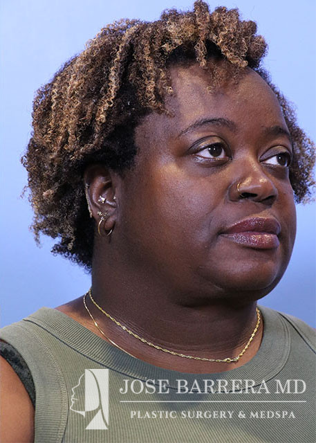 We then proceeded with the MIDE facelift and necklift. A submental incision made and a subcutaneous flap was developed extending from the inferior border of the mandible down to the thyroid cartilage and laterally to the angle of the mandible. Excess subcutaneous fat was sharply excised and the platysma was identified. The medial aspect of the left and right submandibular glands were reduced with care to stay intracapsular sparing marginal mandibular gland.