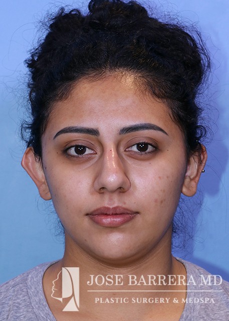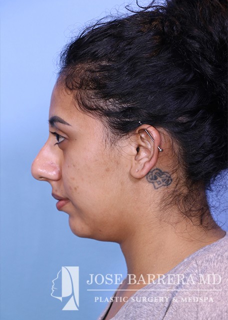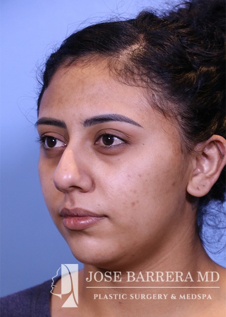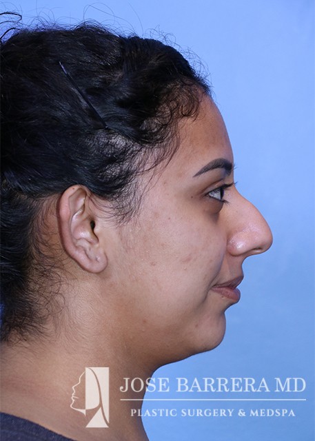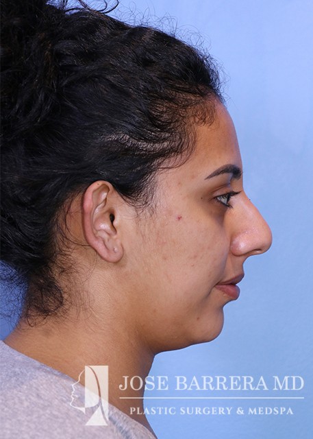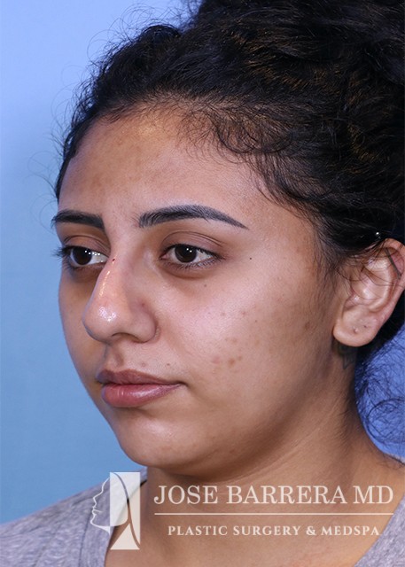 24-year-old female who presented with a large kyphotic dorsal hump. She elected not to undergo rhinoplasty. After discussion with Dr. Barrera, a nonsurgical rhinoplasty was performed using restylane.