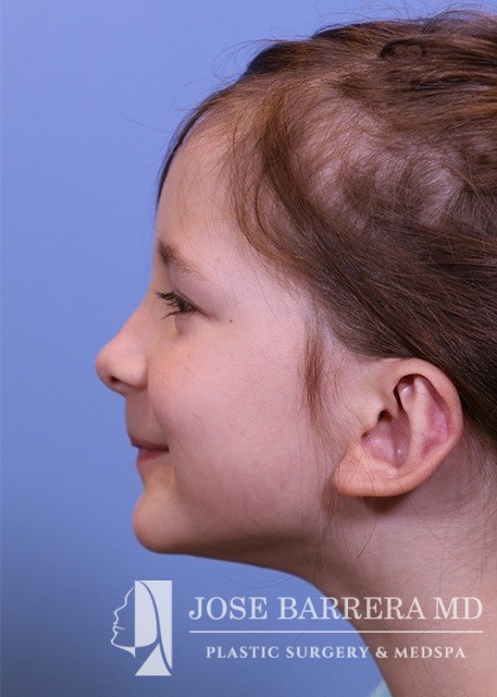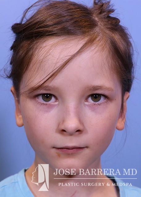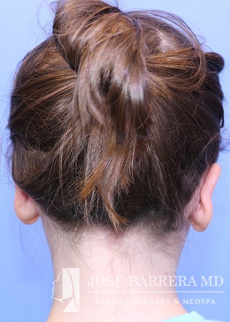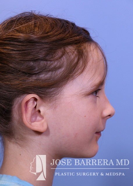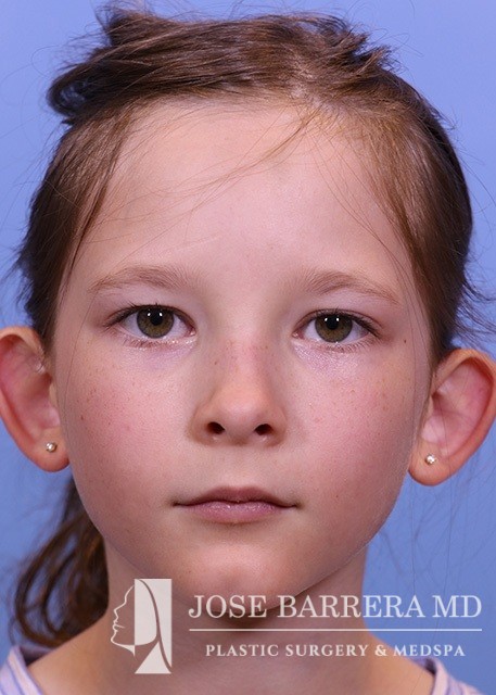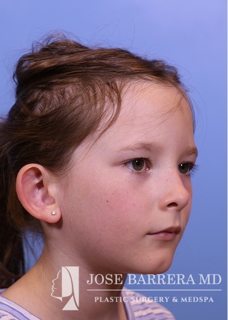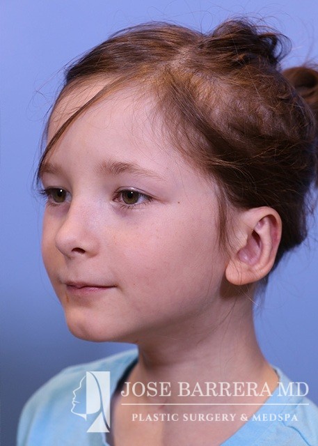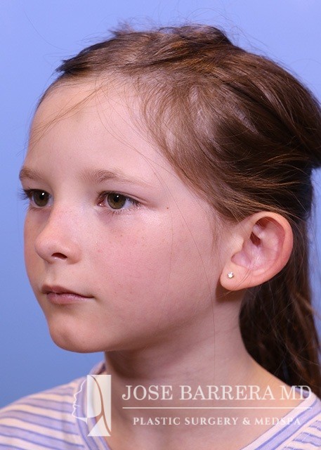 9-year-old female with prominent ears. She underwent an otoplasty with Dr. Barrera to create an antihelical fold, and setback the conchal bowl.