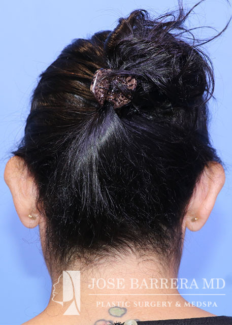 42-year-old female presents to discuss otoplasty for prominent ears desiring reduction of prominauris. She is 9 months postop after otoplasty with Dr. Barrera