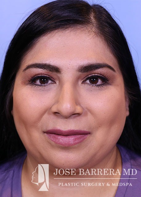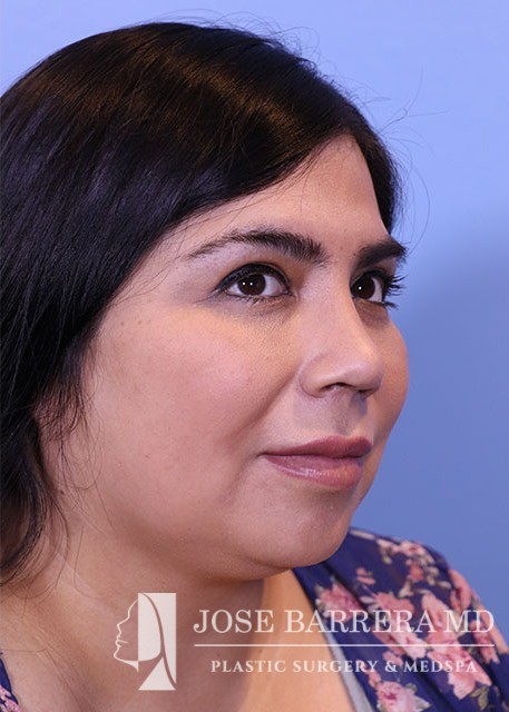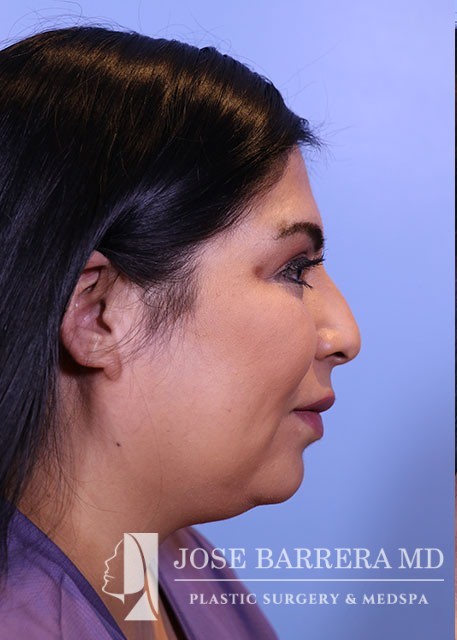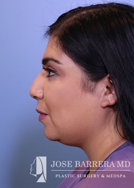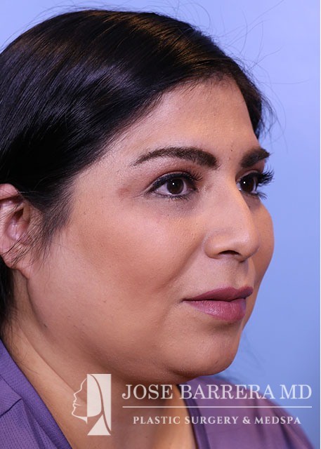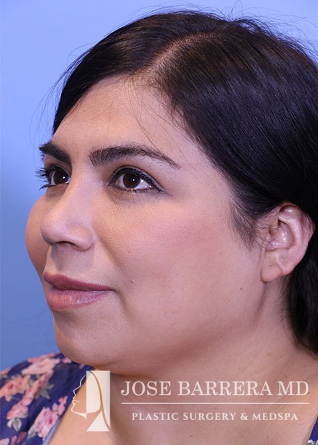 36-year-old female with a droopy nasal tip, dorsal hump, and wide nose. She had a preservation rhinoplasty with Dr. Barrera. She is 3 months postop.