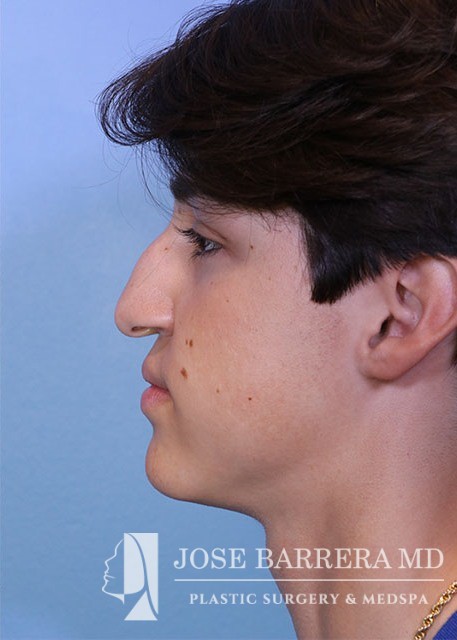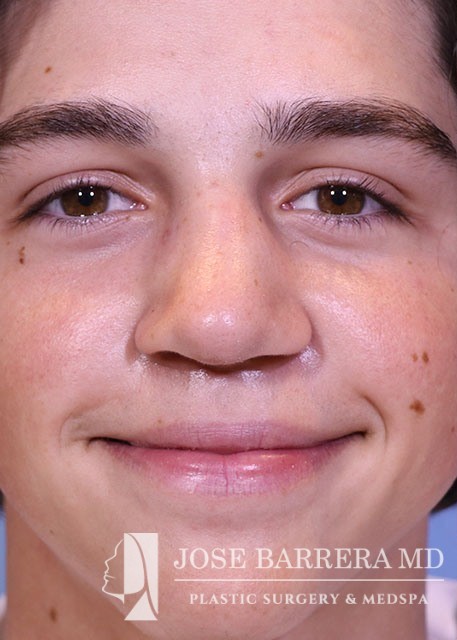 17-year-old male who underwent preservation rhinoplasty after baseball injury to the face. He had both reconstruction of the nasal septum, as well as septal extension graft, and modified cottle maneuver with Dr. Barrera. He is 3 months postop.
