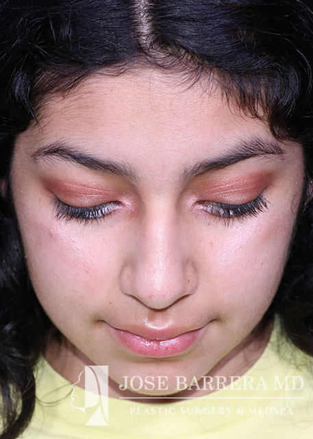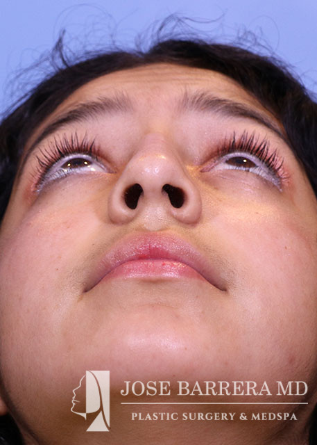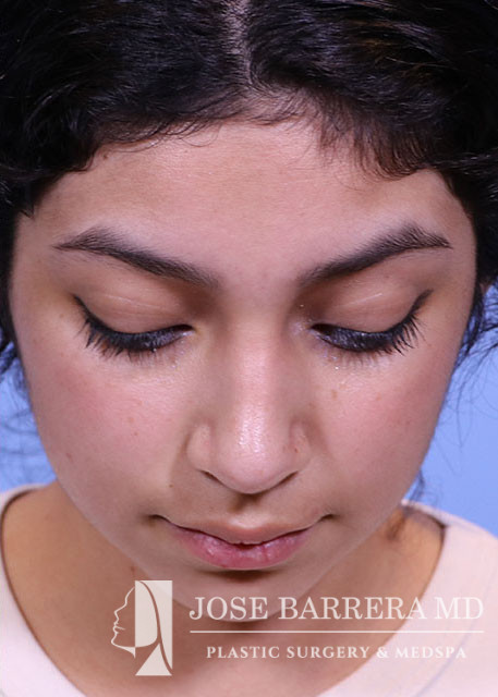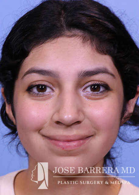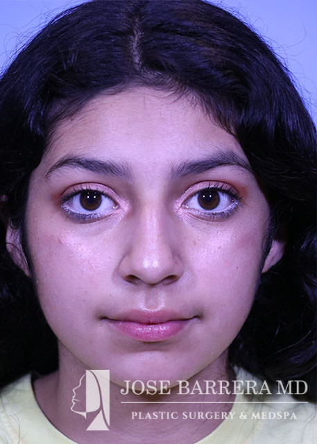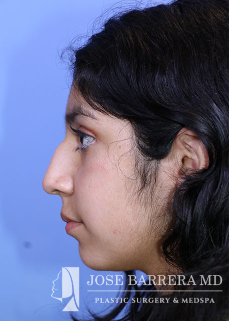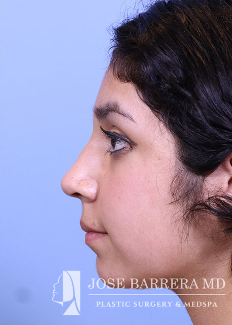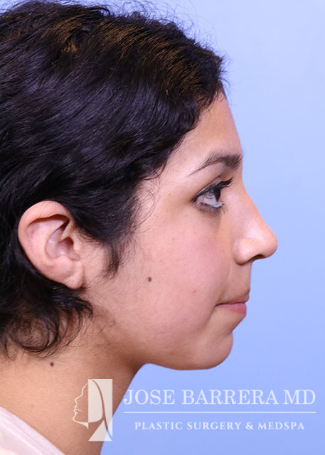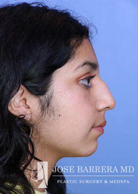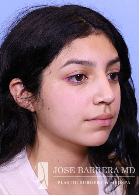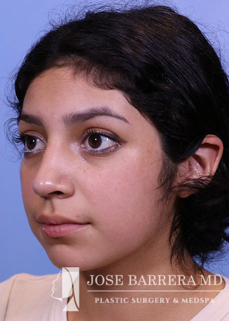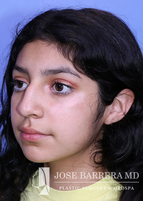 16-year-old female presents today in consultation regarding aesthetic nasal concerns. The patient desires dorsal hump reduction, tip refinement, straightened nasal pyramid. She underwent a primary cosmetic preservation septorhinoplasty with septal cartilage grafting (left SEG, supratip cartilage grafting) with Dr. Barrera. She is 3 months postop.
