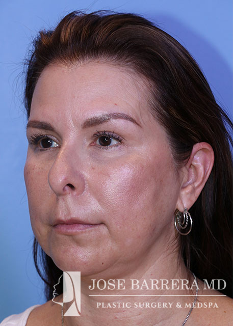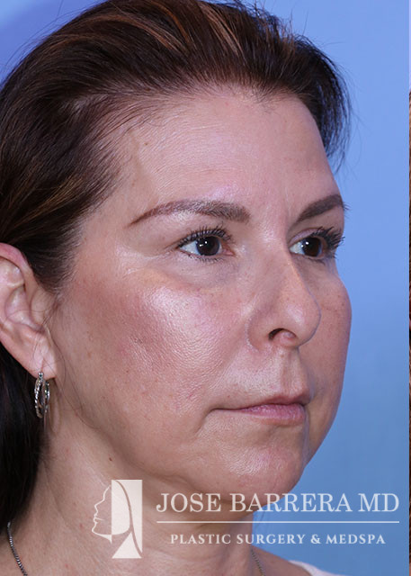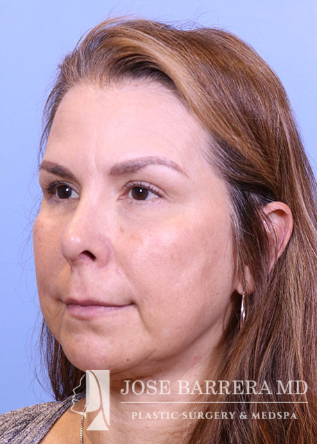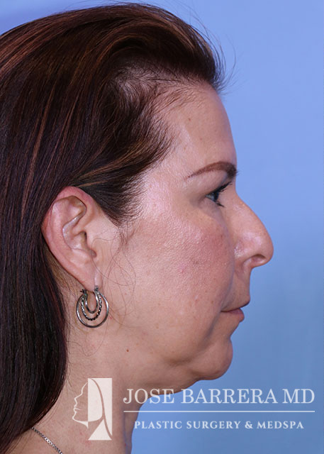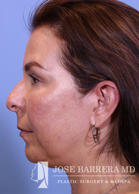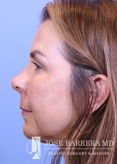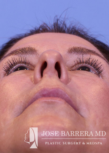 52 year-old female presenting today in consultation regarding aesthetic nasal concerns. Patient desires dorsal hump reduction, reduced nasal base, tip refinement, narrowed nasal dorsum. Patient denies nasal breathing concerns. Dr. Barrera performed a Primary cosmetic preservation septorhinoplasty with septal cartilage grafting (left SEG)