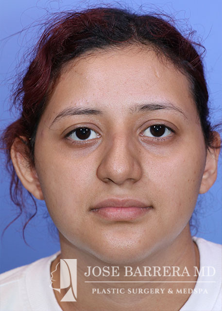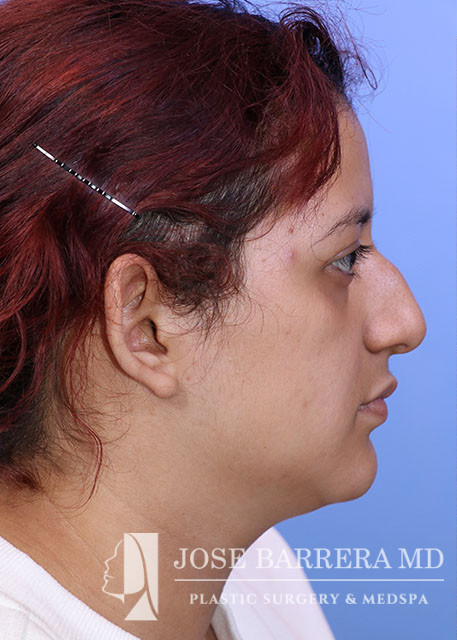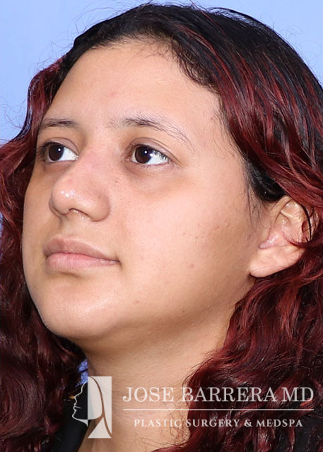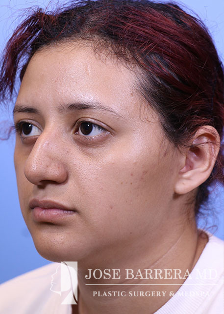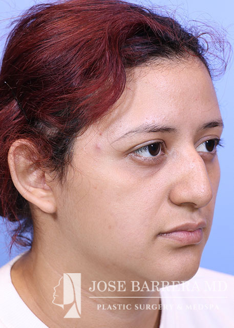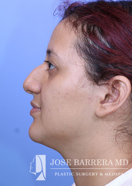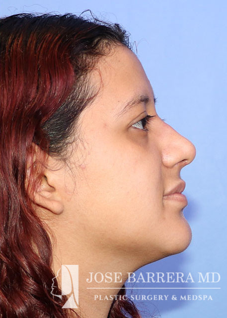 23 year-old female presenting today in consultation regarding aesthetic nasal concerns. Patient desires dorsal hump reduction, increased tip rotation for a ptotic nasal tip, tip refinement. She underwent a Primary cosmetic preservation septorhinoplasty with septal cartilage grafting (left SEG). A modified through and through dorsal cartilage z plasty incision was performed along with an osteotomy through the perpendicular plate of the ethmoid bone to allow for let down of the dorsal hump. At this point, the nasal dorsum was fully let down. A 5-0 prolene was placed around the excised septal cartilage segment to hold the let down dorsal hump in position. An inferior oblique incision is then carried caudally through to the anterior septal angle to level of cartilaginous dorsum.