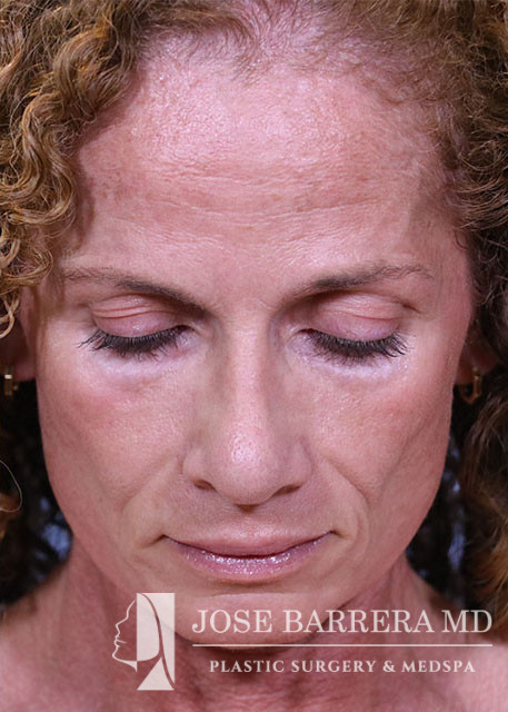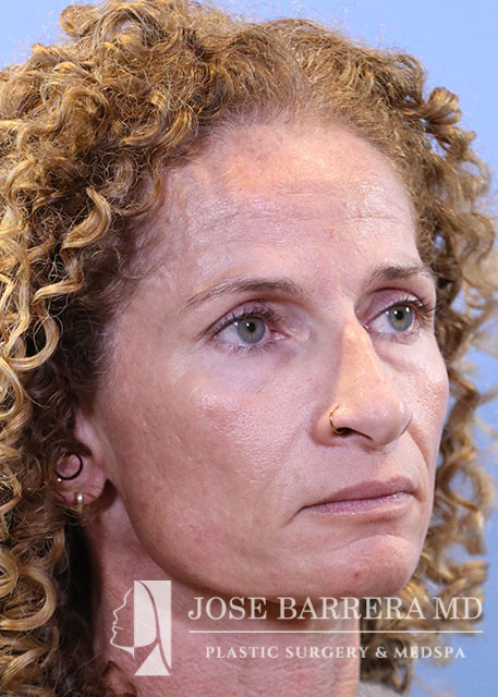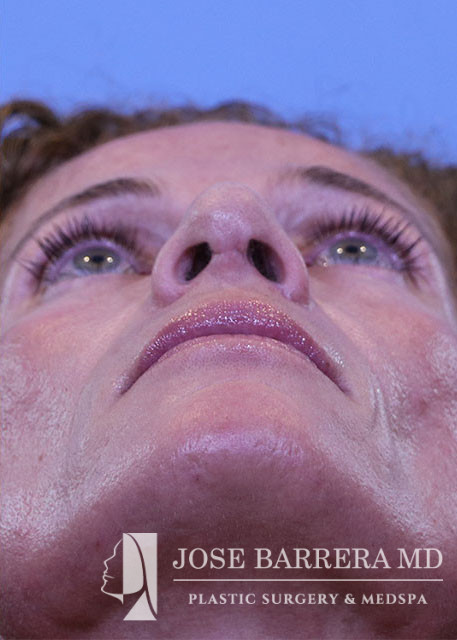1 mo s/p preservation rhino with R SEG, L ANSA, R autospreader, R let down, L pushdown, complete z flap, medial crural overlay, LCSG, cephalic and caudal trims. endoscopic browlift