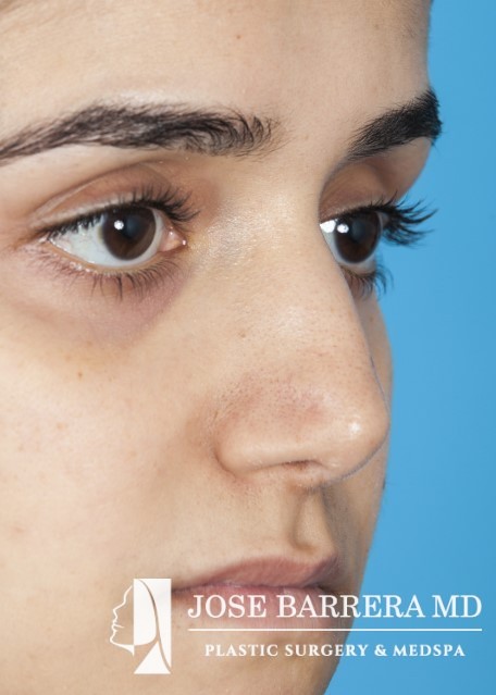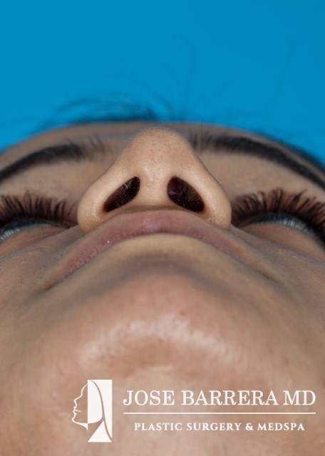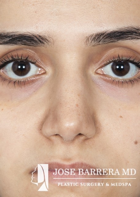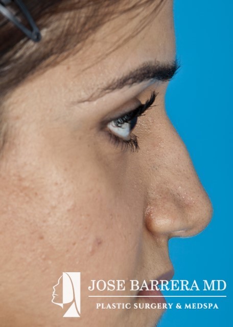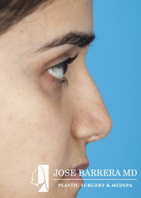 24-year-old female who underwent revision rhinoplasty and cheek implants with Dr. Barrera. The patient presented dorsal hump, nasal tip ptosis, and maxillary hypoplasia. Dorsal hump reduction and spreader grafts were placed. Bilateral cheek implants were also performed to improve the midface hypoplasia and improve cheek volume. Her preoperative and postoperative photos reflect 14 months postoperative follow-up after revision rhinoplasty.