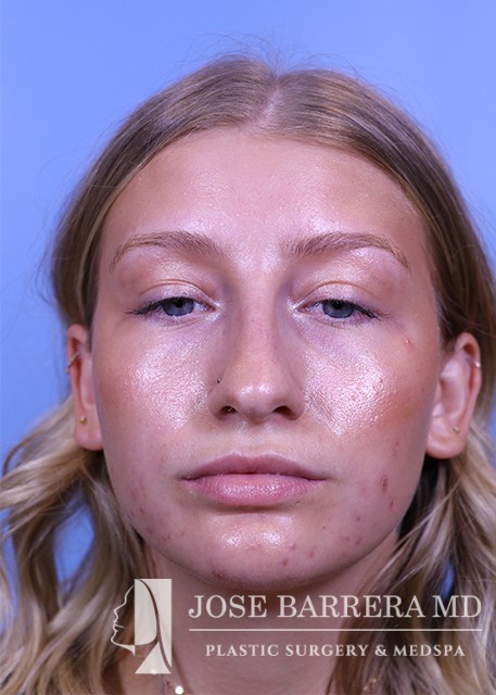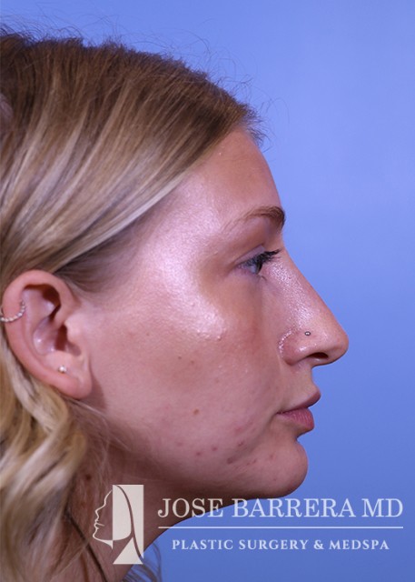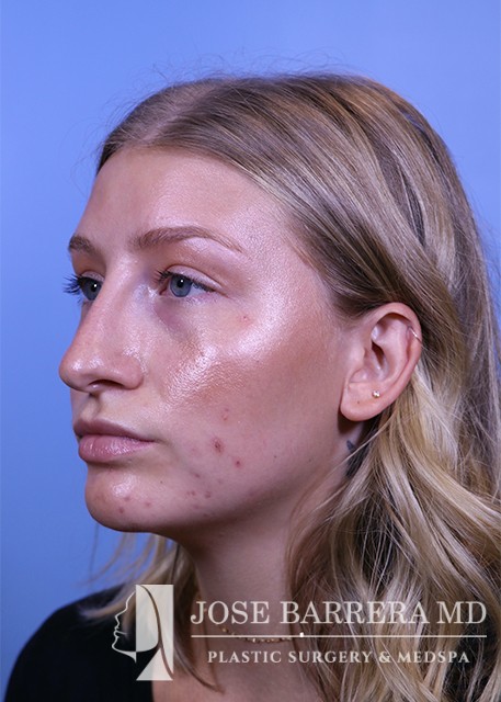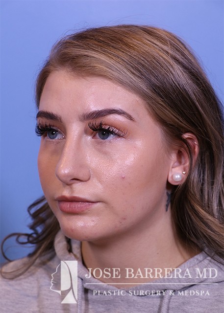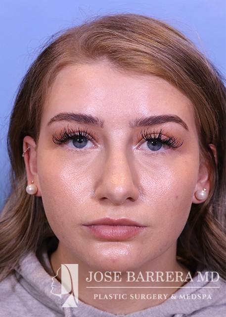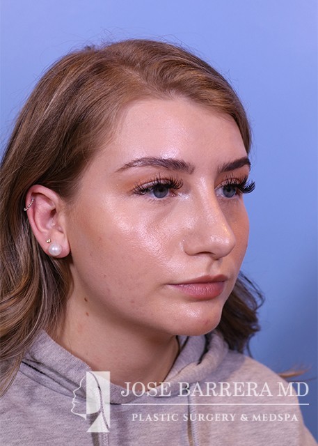 22-year-old female who does not like the appearance of her nose, specifically the tip. She feels it is too big for her face. She would like to have a more sloped appearance of her bridge. She has had filler to the bridge and tip over a year ago. She underwent a septorhinoplasty with cartilage grafting. She is happy with her aesthetic result and is 6 months postop.