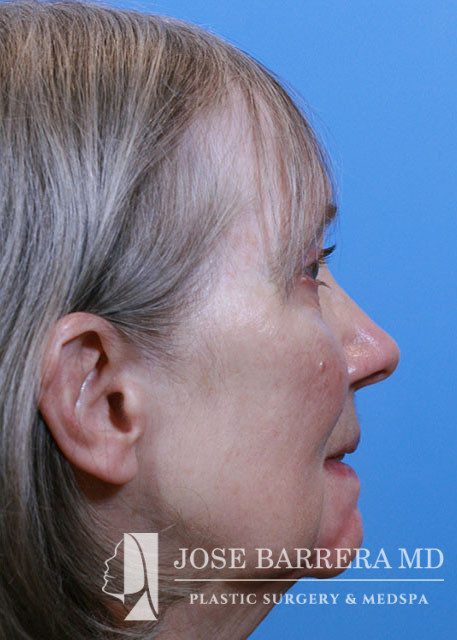 59-year-old female presenting for CO2 laser resurfacing for lower lip scar. She presents 3 months status post CO2 laser resurfacing of right chin scar . Patient is healing well, happy with early cosmetic result. She reports history of rosacea.