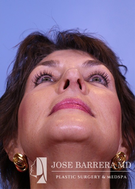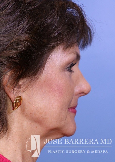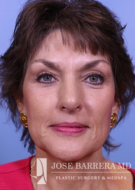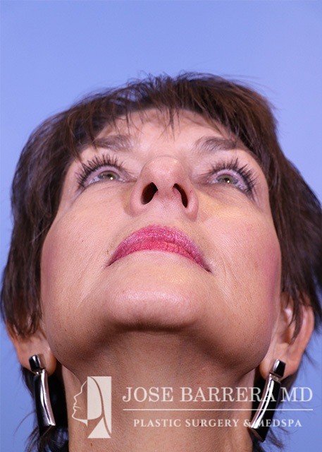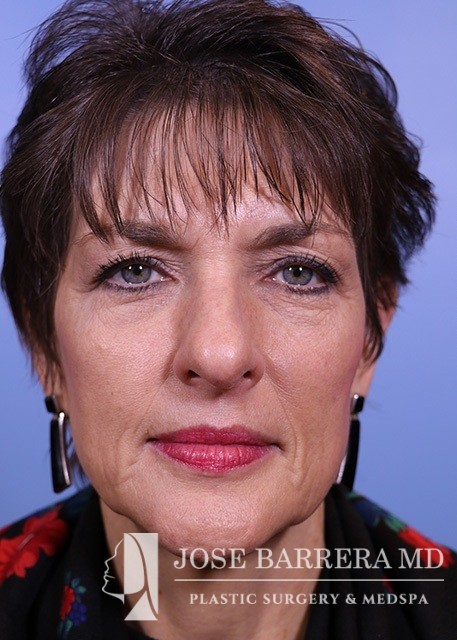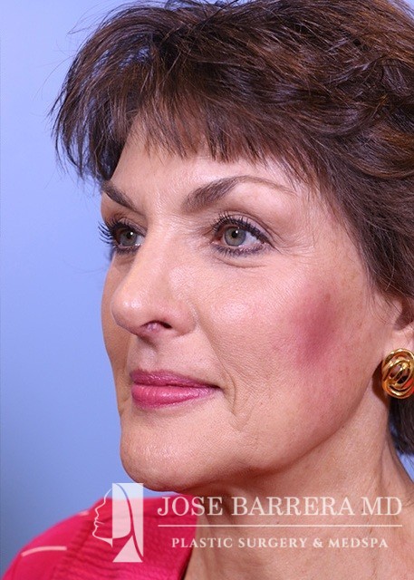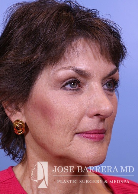 63 yo female who underwent Septorhinoplasty and is 6 months postop. She had a Joseph technique rhinoplasty with hump reduction, spreader grafts, and septal extension graft. The dorsum was reduced and the nasal tip rotated to achieve symmetry.