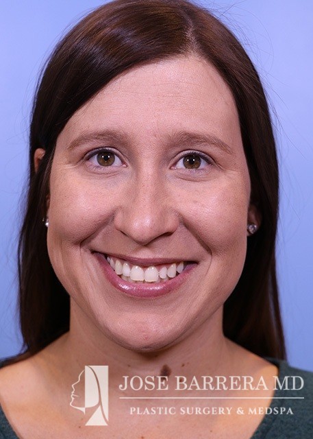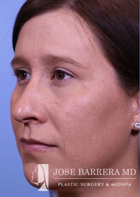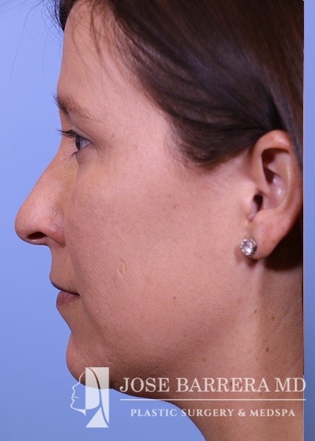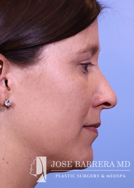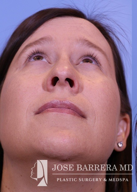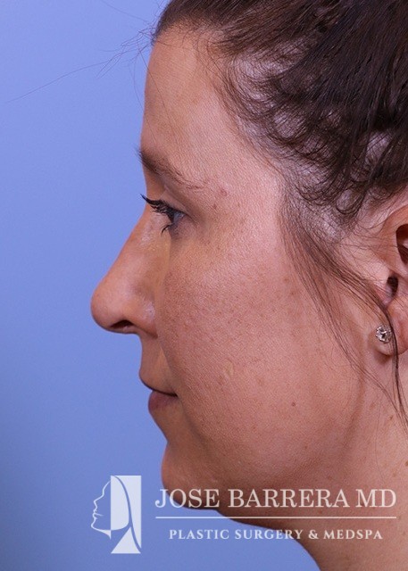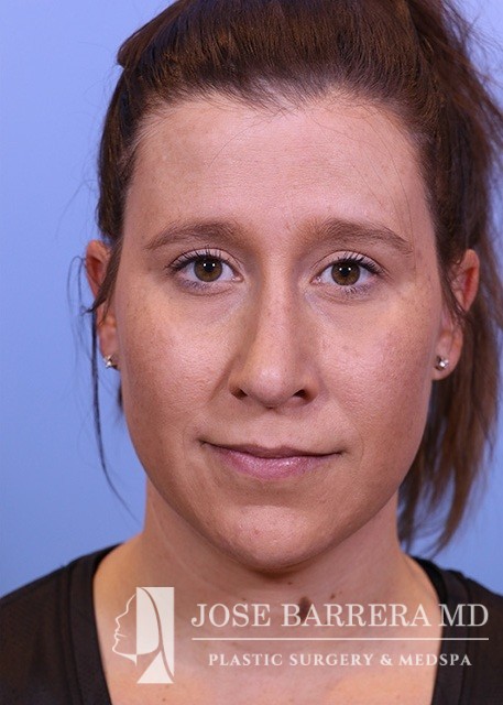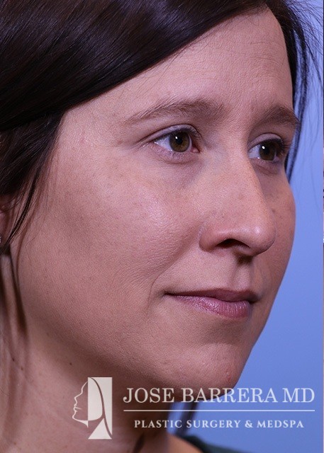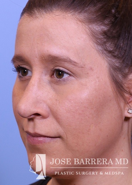 34-year-old female who is 4.5 months s/p septorhinoplasty and septal cartilage grafting. She presented with a crooked nose. A dorsal hump reduction was performed with spreader grafts. A septal extension graft was placed and nasal tip refinement was performed.