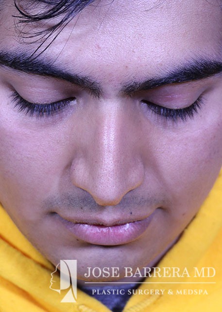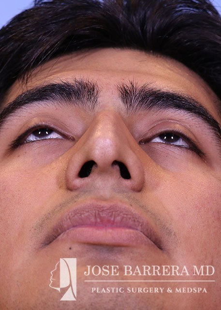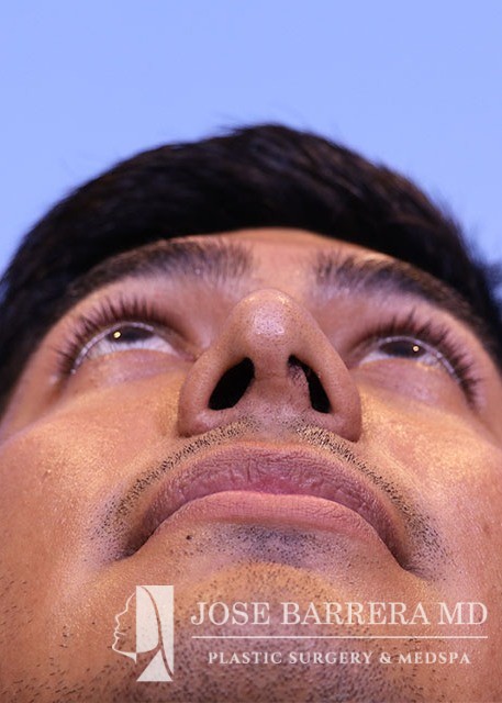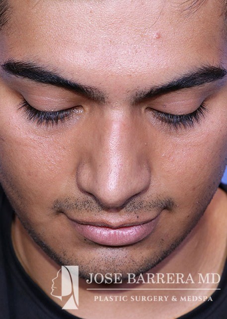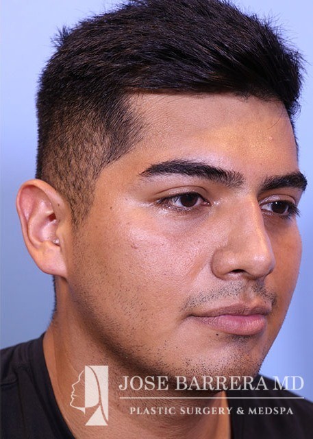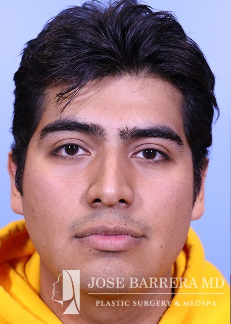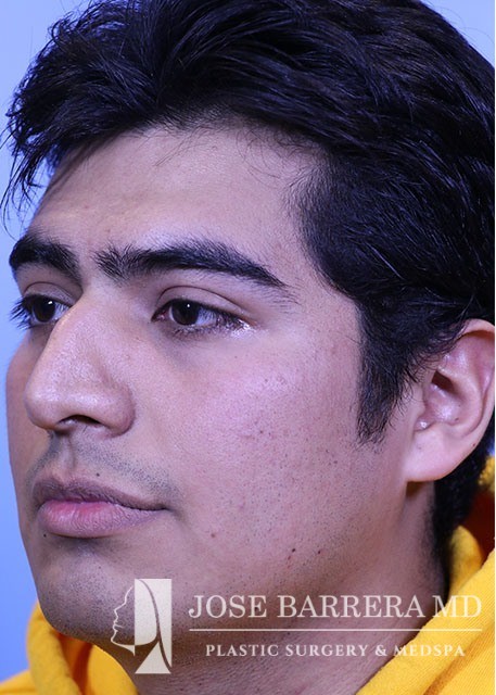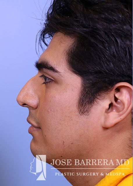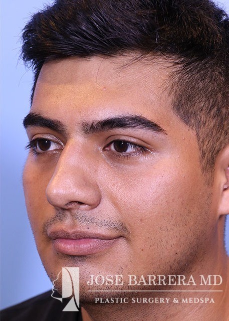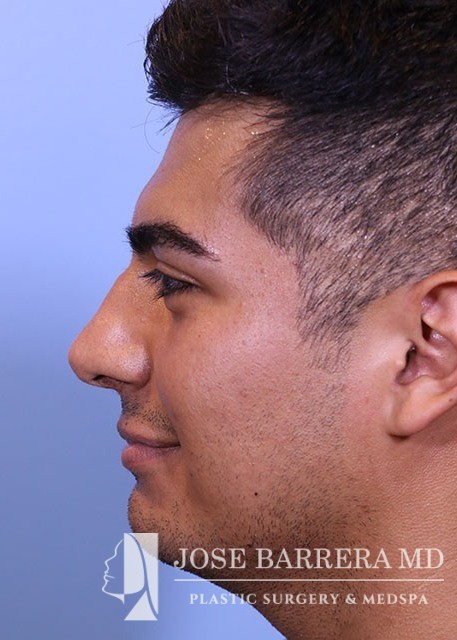24-year-old male who presented with a large dorsal hump and thick skin. He underwent septorhinoplasty to improve his nasal breathing and the dorsal hump on his nose.