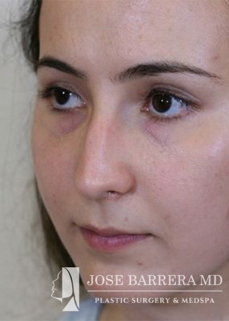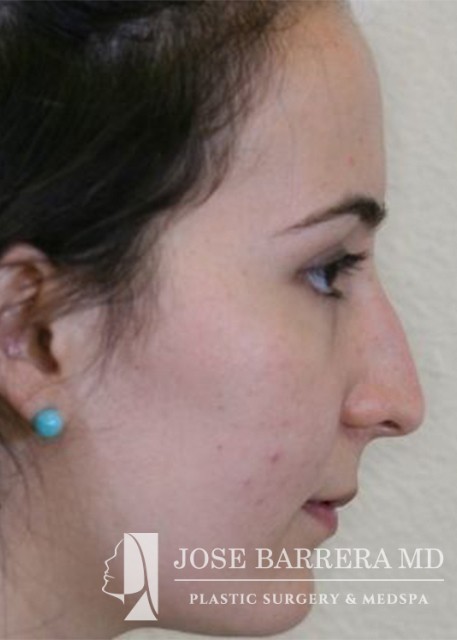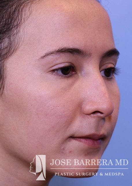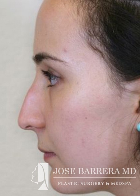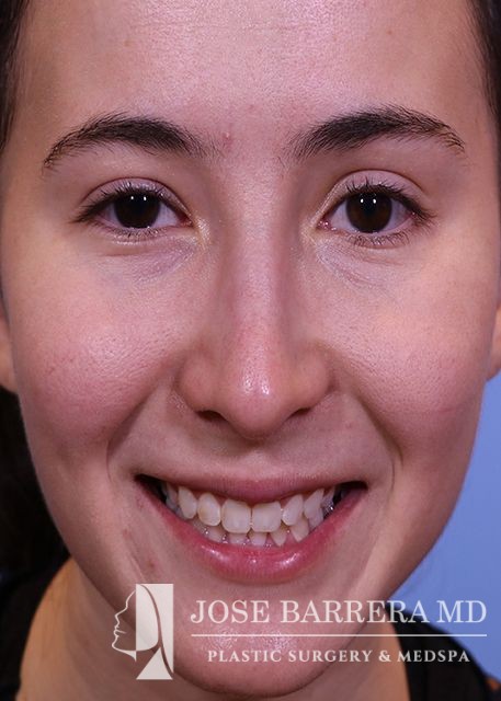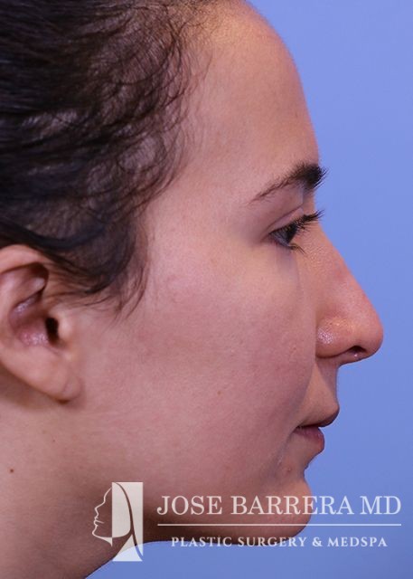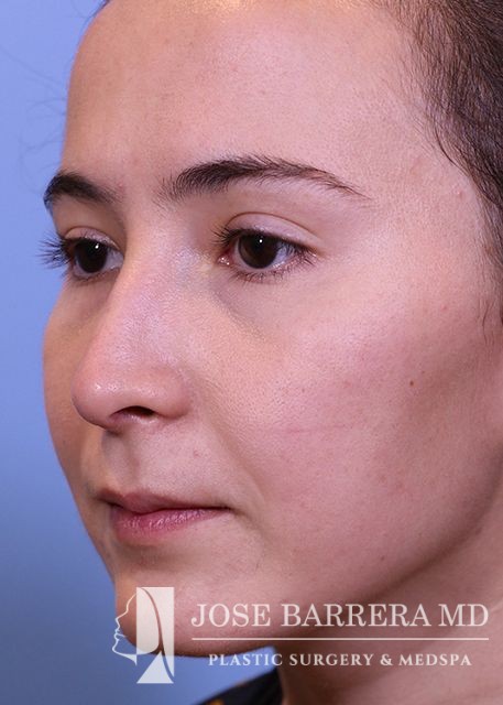 35-year-old female who presents with nasal obstruction, septal deviation, and sinus concerns. She underwent a septorhinoplasty with Dr. Barrera to improve the dorsal hump and droopy tip. A septal extension graft was utilized as well as spreader grafts after dorsal hump reduction. The patient is 3 years postoperative.