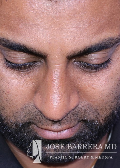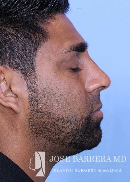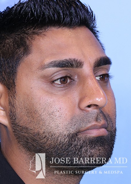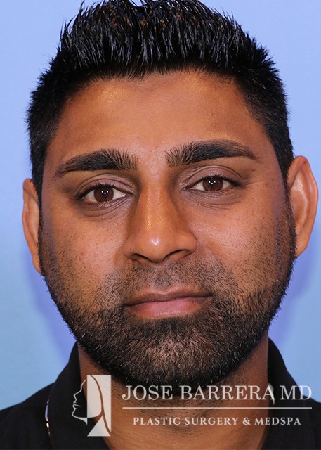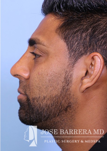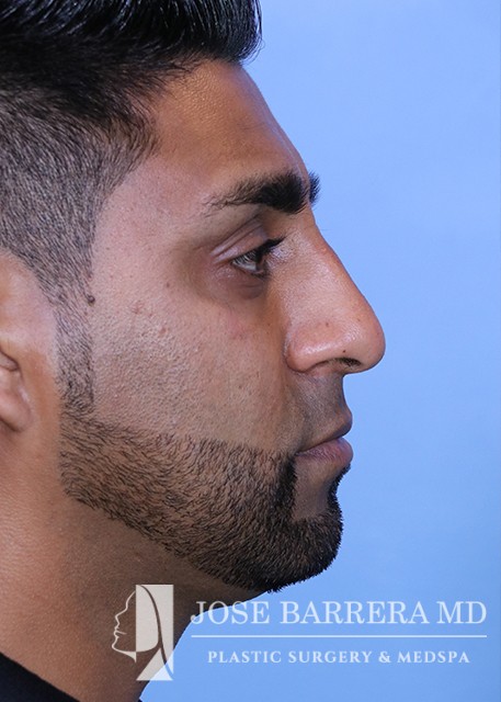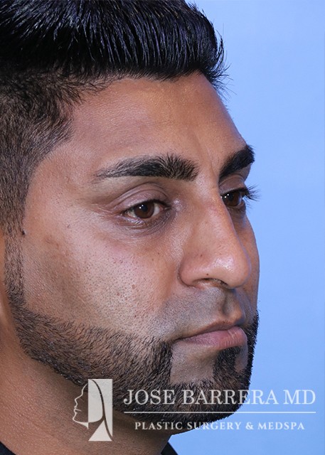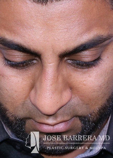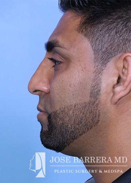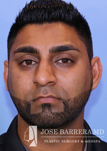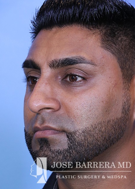 30-year-old male who presents with a traumatic deformity of the nose and septal deviation. He underwent a septorhinoplasty with Dr. Barrera. The operation consisted ofseptal extension graft and bilateral lateral crural strut grafts placed using costal cartilage grafting.