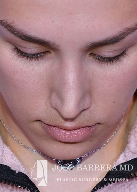 She is status 2 year post-op septorhinoplasty with cartilage grafting, septoplasty, turbinate reduction & nasal valve repair in Feb 2022. Developed left nasal obstruction and is now 3 month s/p revision septoplasty, revision nasal valve reconstruction with costal cartilage grafting, and inferior turbinate submucous reduction and outfracture.