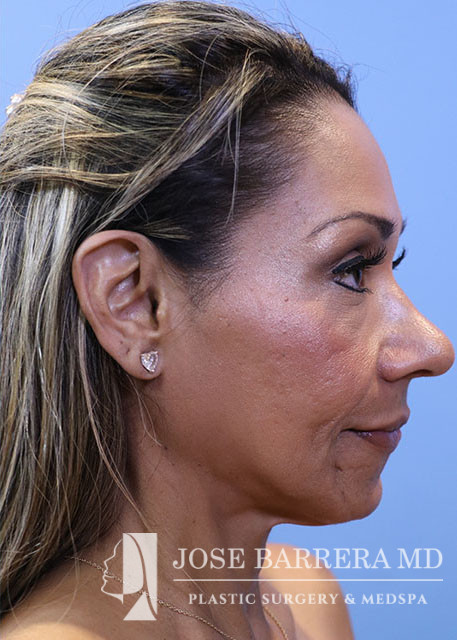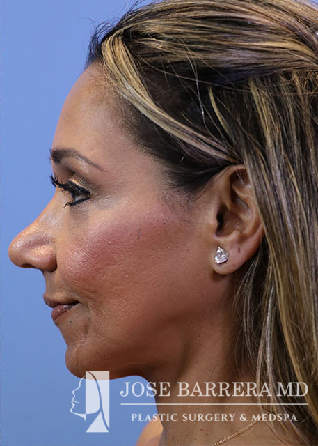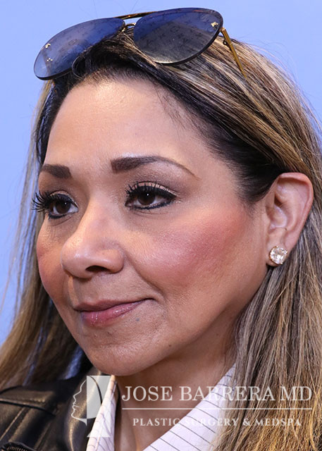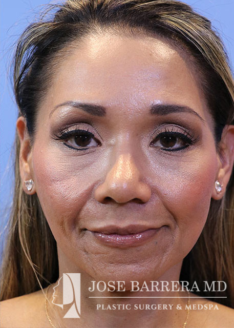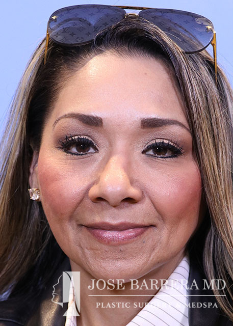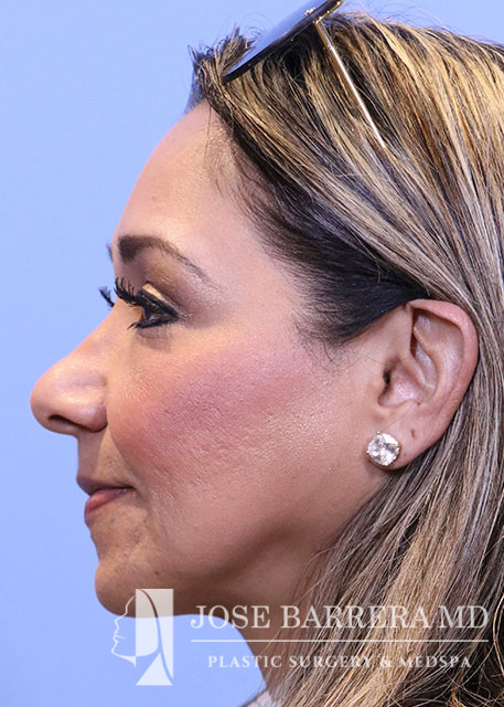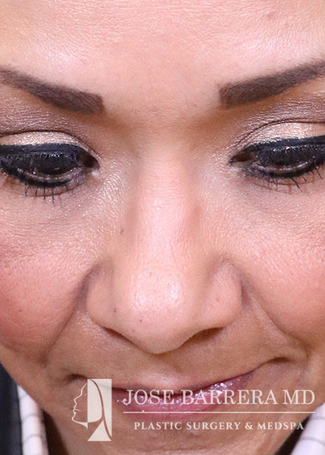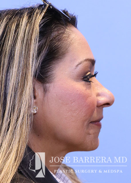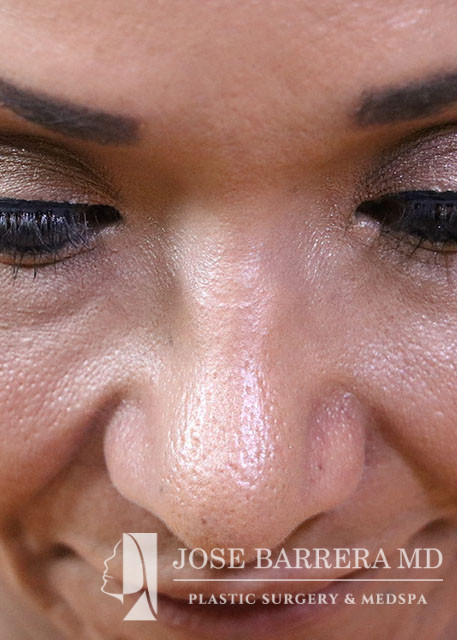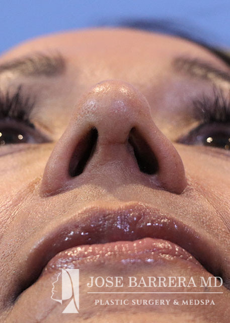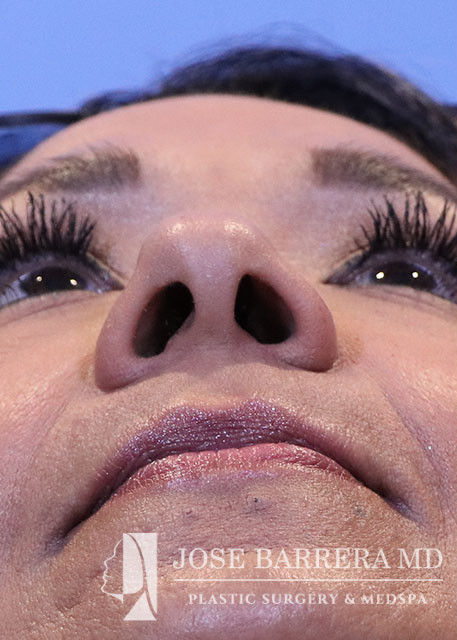 50 year old female 1 month s/p Joseph Rhinoplasty, Left costal septal extension graft, L spreader graft, R ANSA banner, bilateral let downs (L>R), lateral crural turn in flaps, supra tip graft